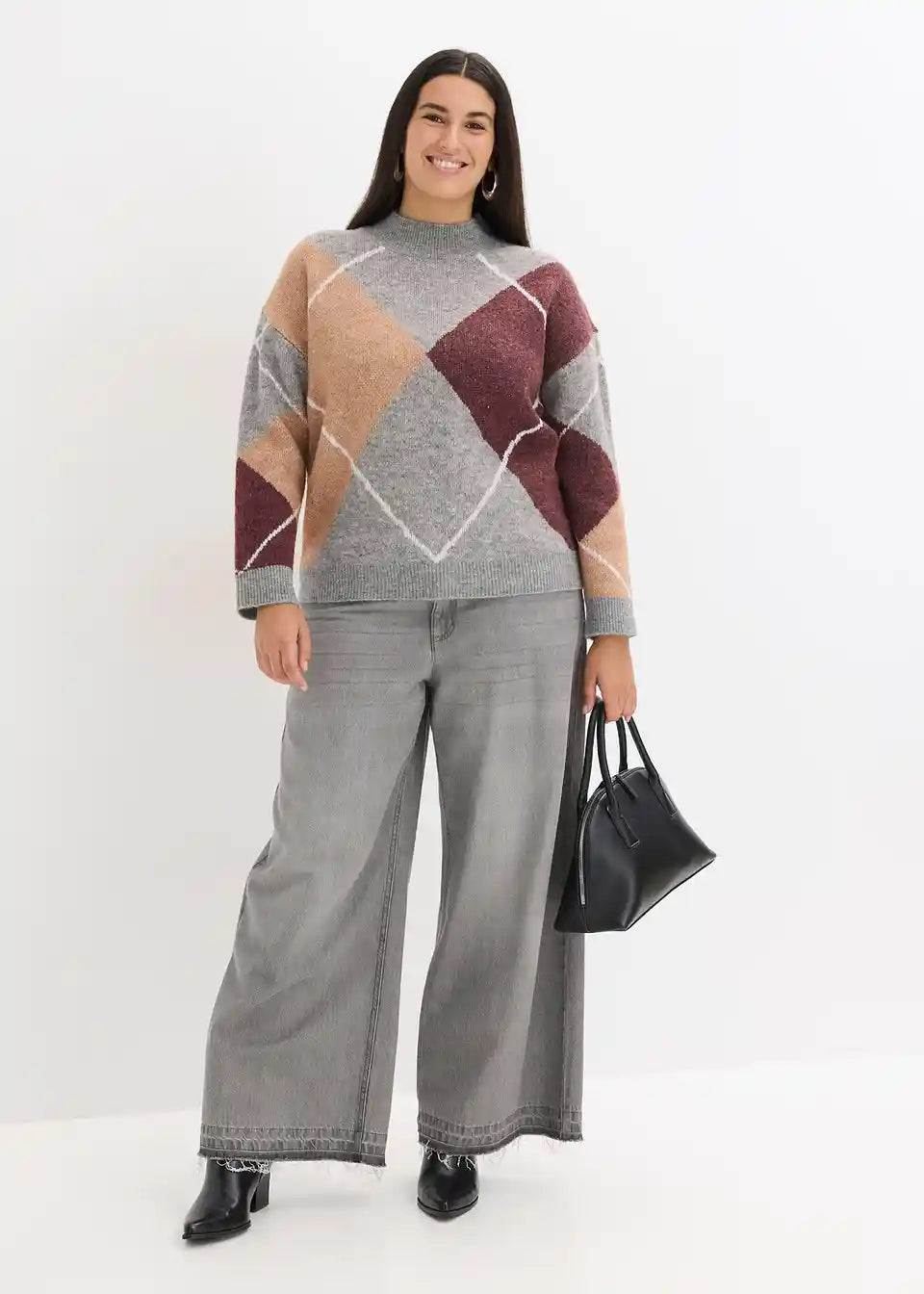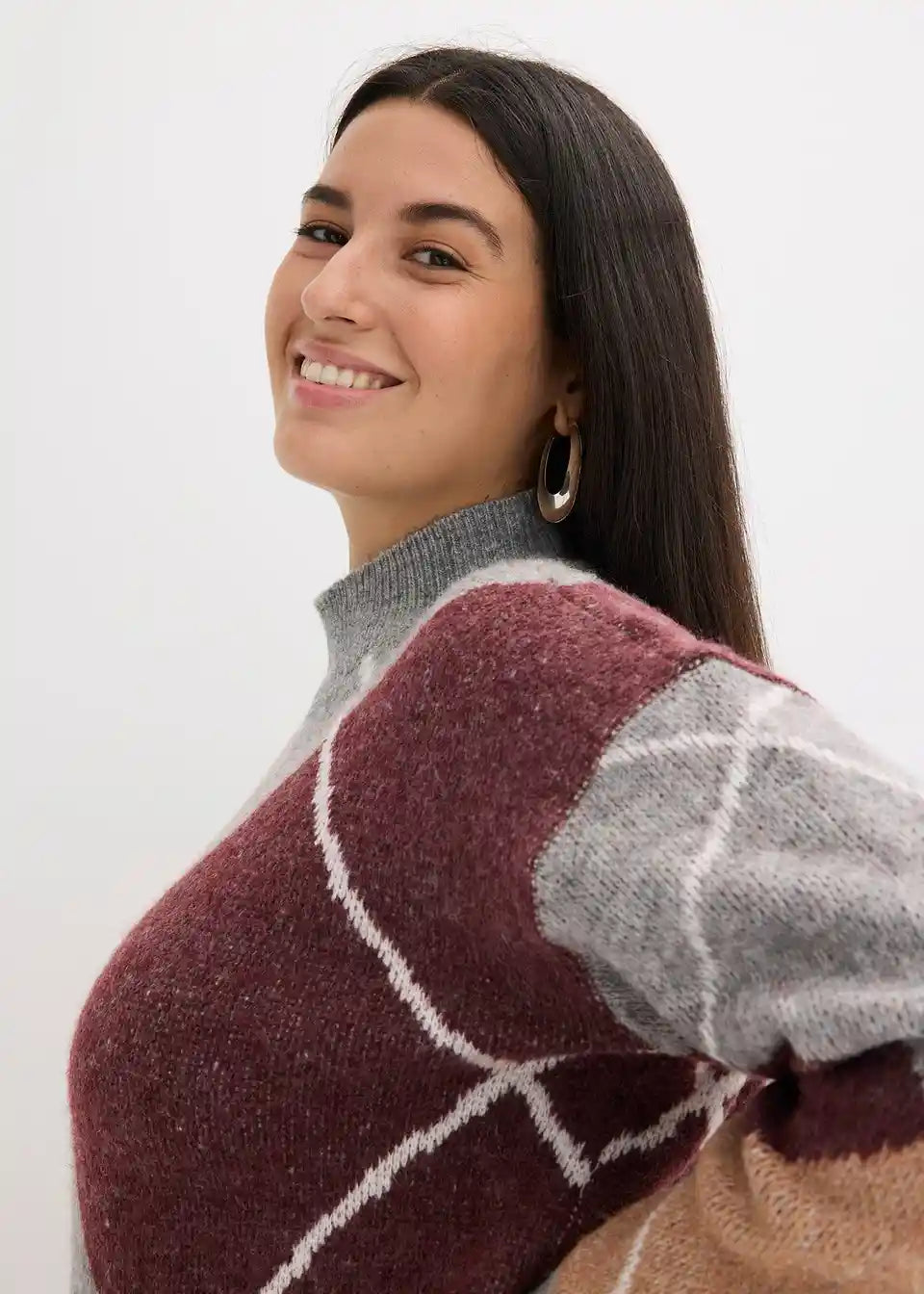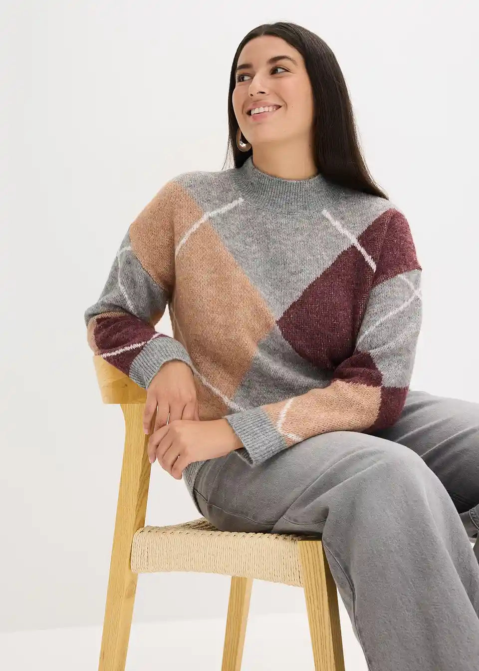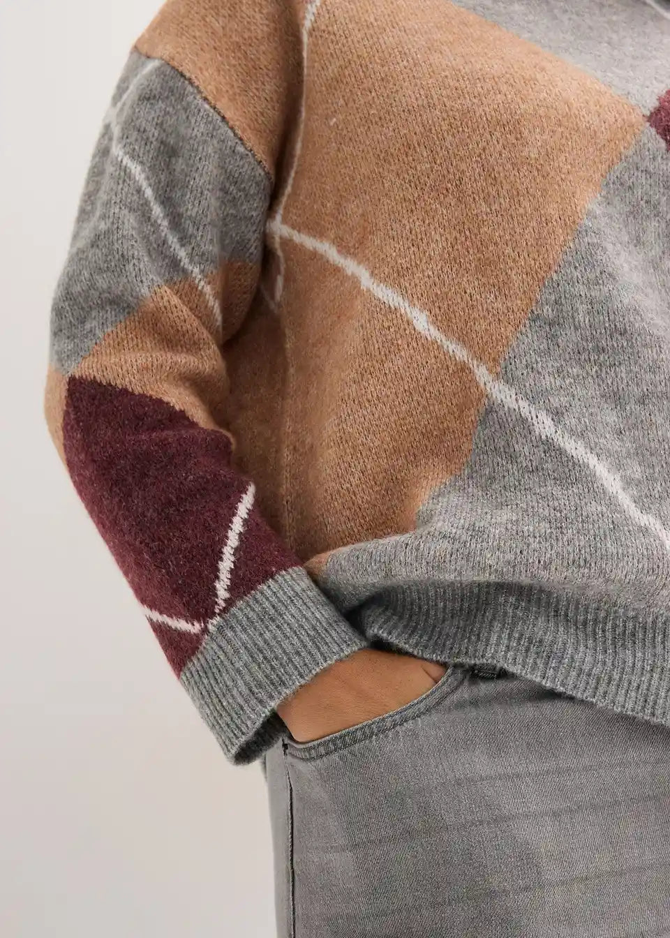 weicher Oversize-Pullover mit Stehkragen und modischem Argyle-Muster