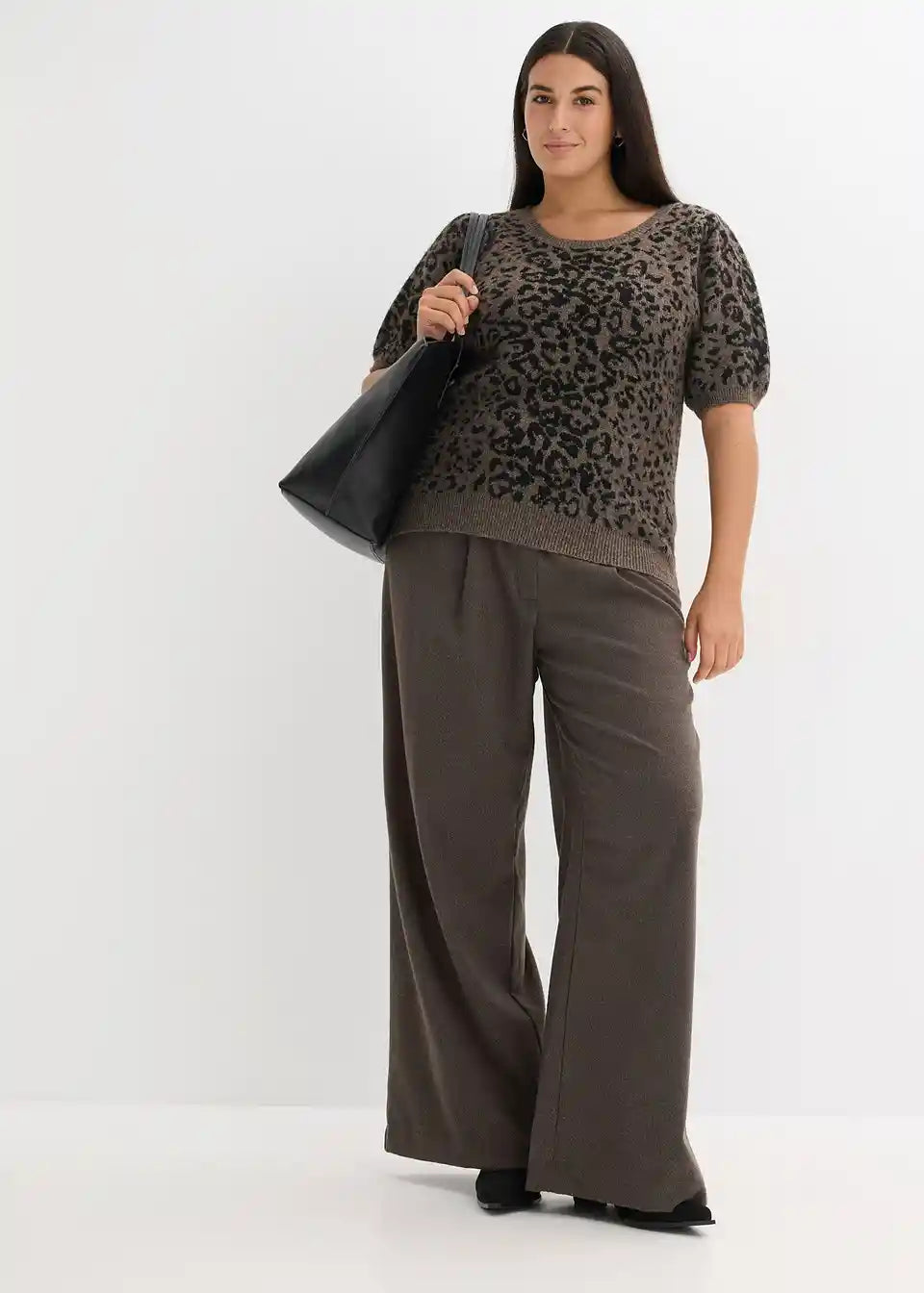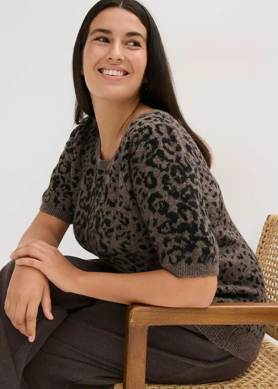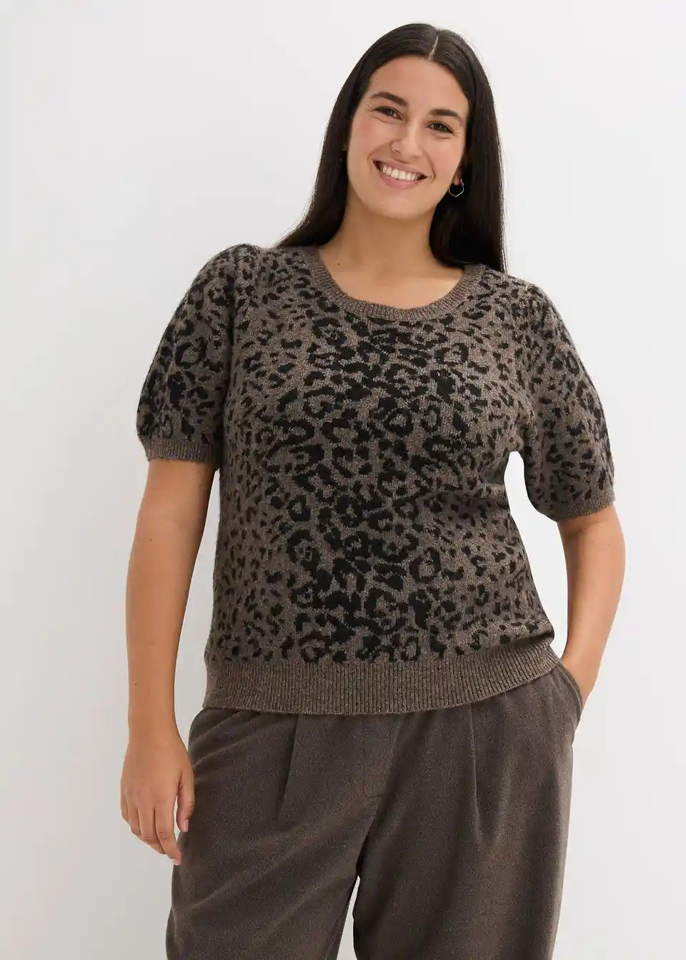 weicher Pullover mit halblangen Puffärmeln und modischem Leoparden-Muster