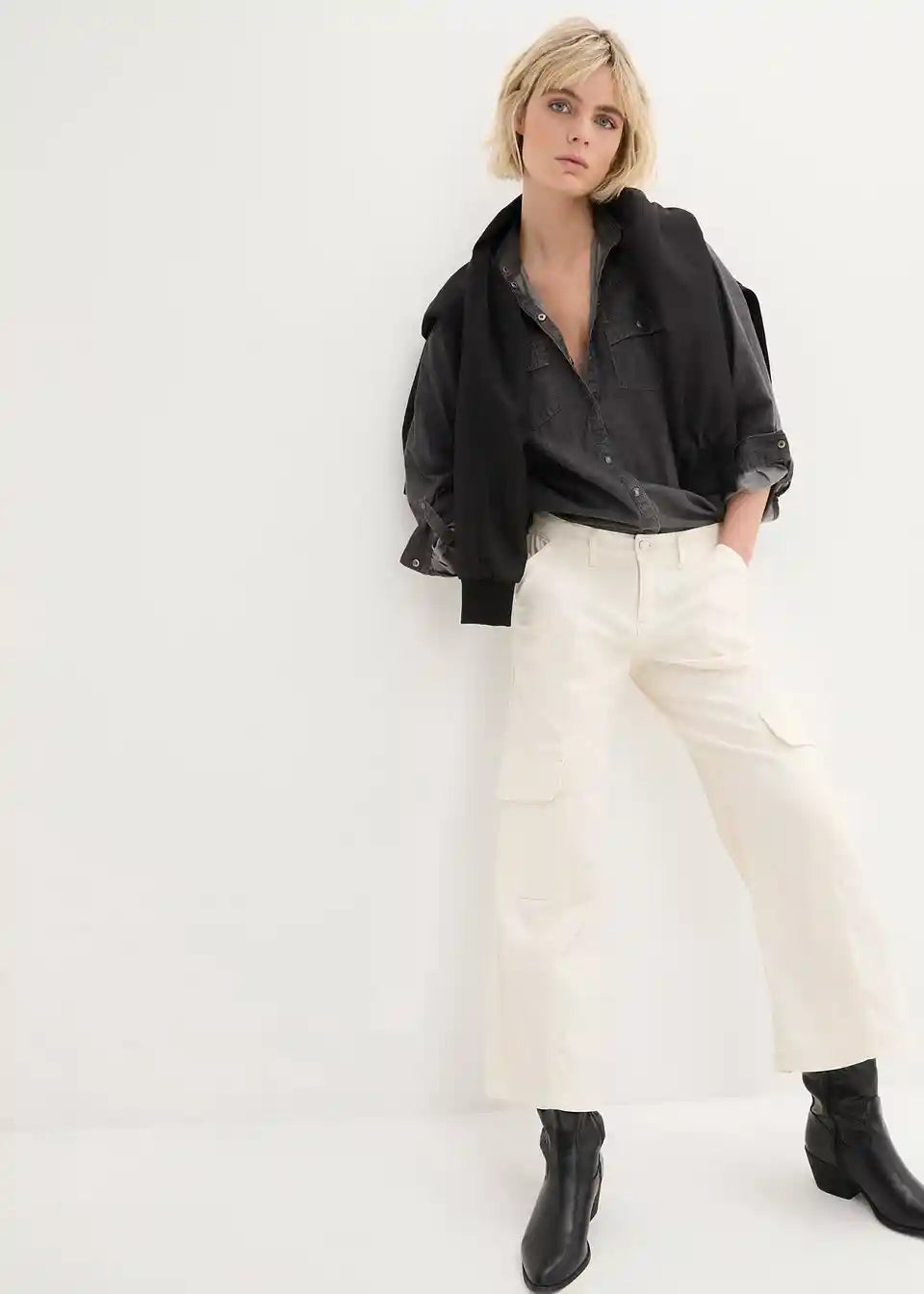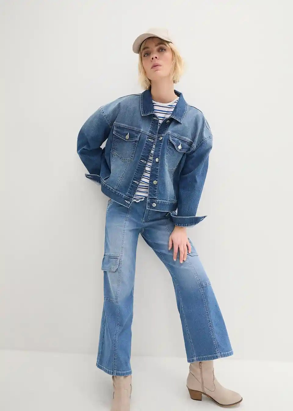 Verkürzte Cargo Jeans mit mittlerem Bund