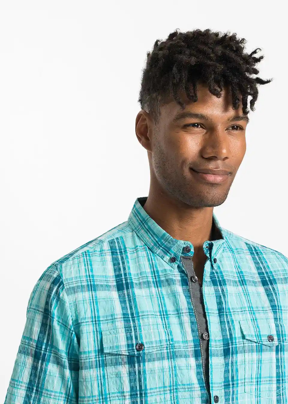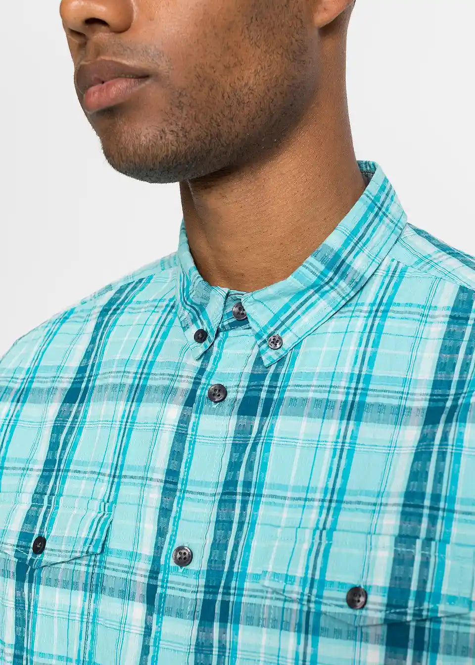 Kariertes Seersucker-Kurzarmhemd mit Button-down-Kragen und Brusttaschen
