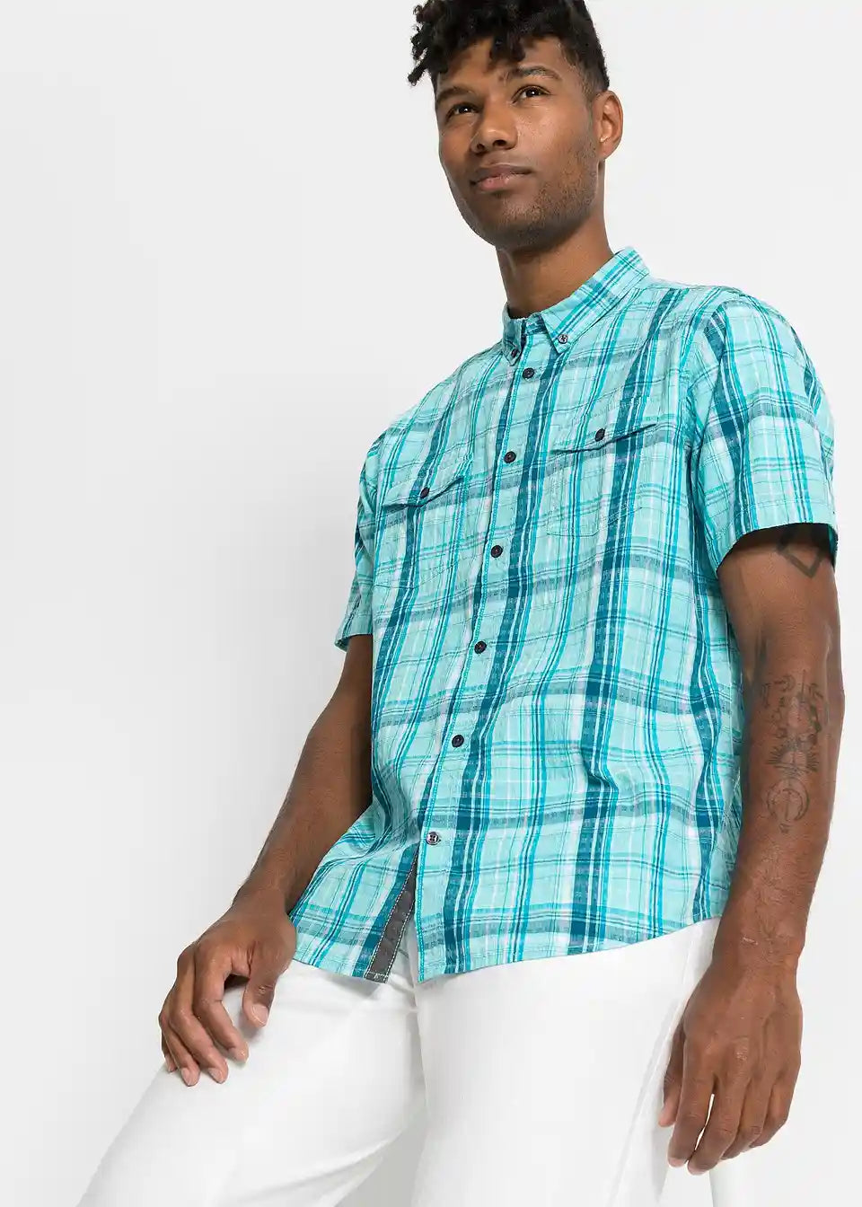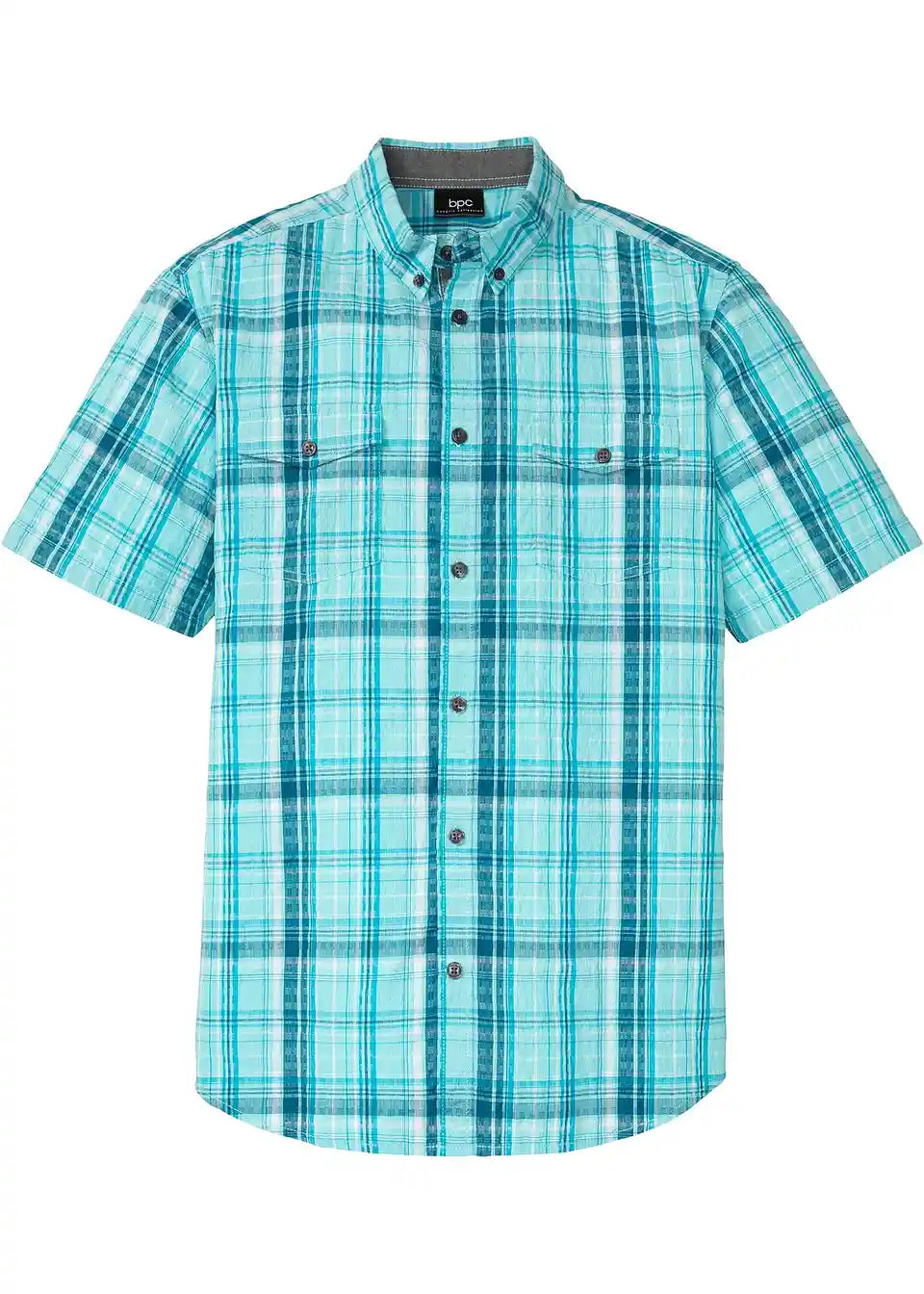 Dieses Herren Seersucker-Karohemd im Regular Fit passt super zu bequemen Freizeit-Outfits.Das kurzärmlige Hemd von bpc zeichnet sich durch das markante Karomuster und die besondere Seersucker-Struktur aus. Vorne ist das Karohemd mit Button-down-Kragen sowie mit zwei Brusttaschen mit Patte und Knopf gearbeitet. Die farblich abgesetzten Elemente an der Knopf-Innenleiste sowie am Innenkragen ergänzen das alltagstaugliche Hemd-Design.