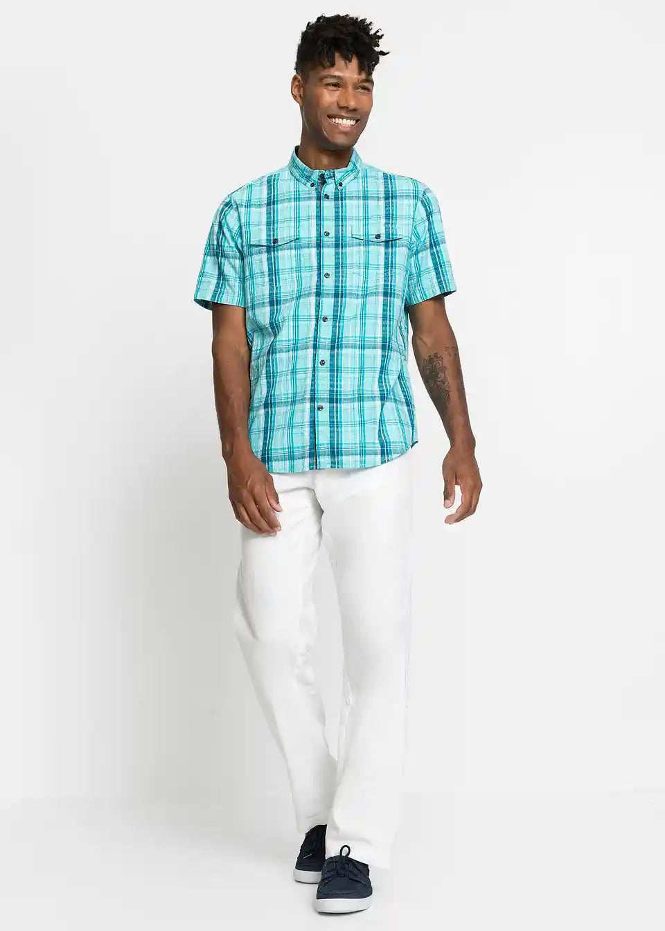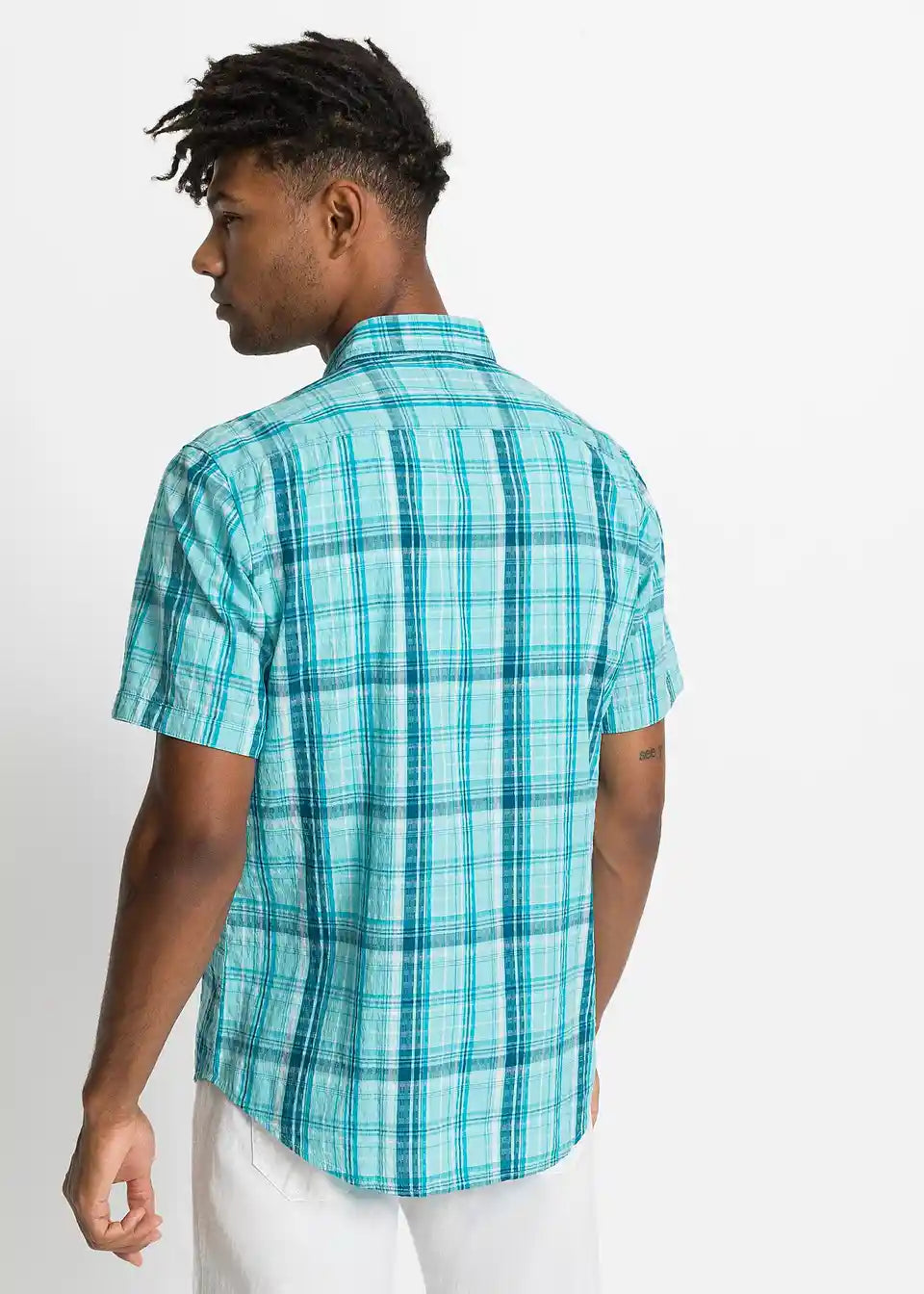 Seersucker-Kurzarmhemd aus reiner Baumwolle