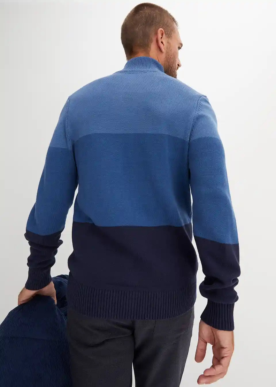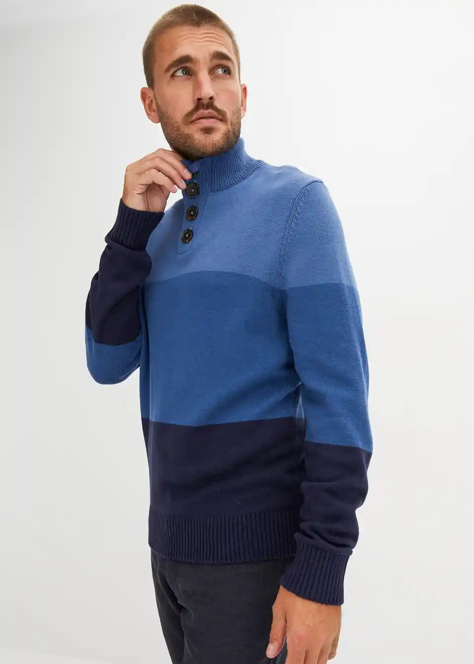 moderner Pullover mit Troyerkragen und Knopfleiste