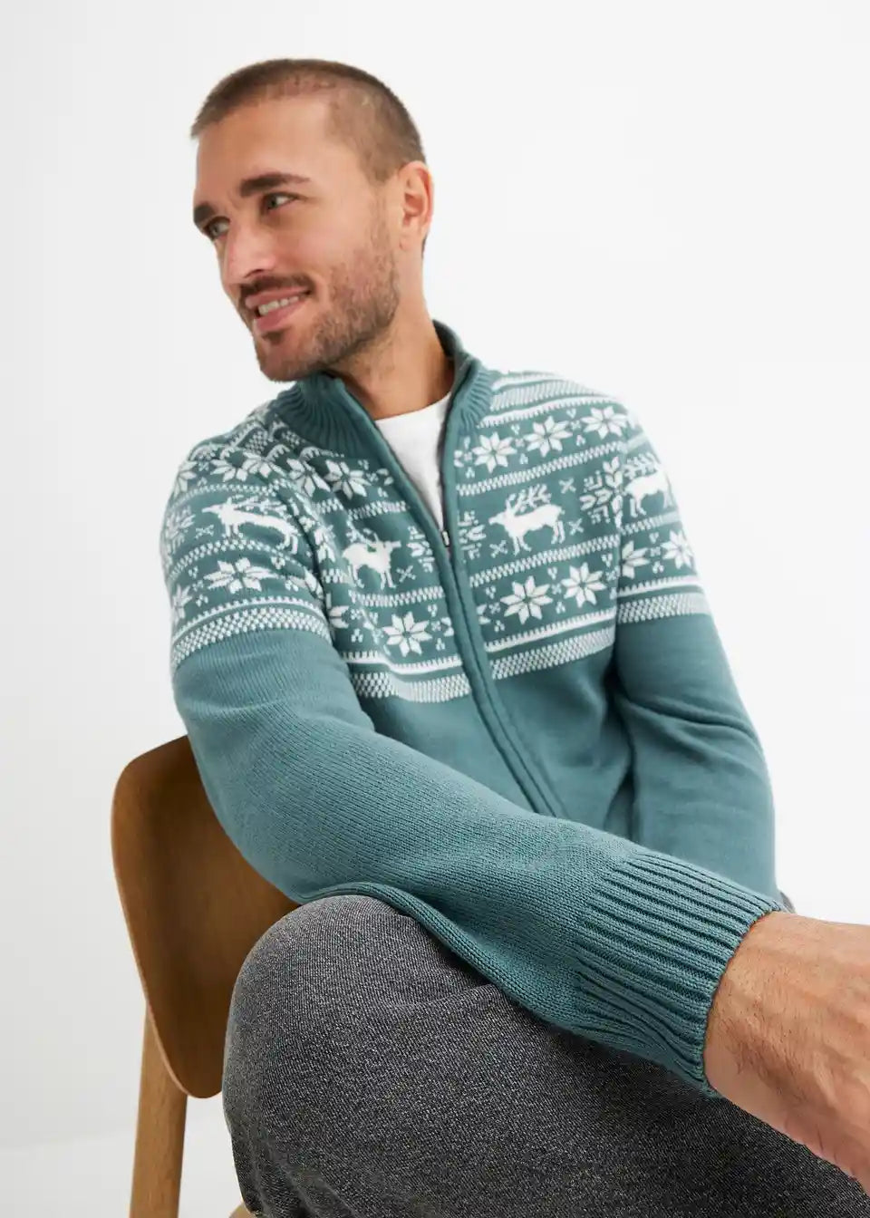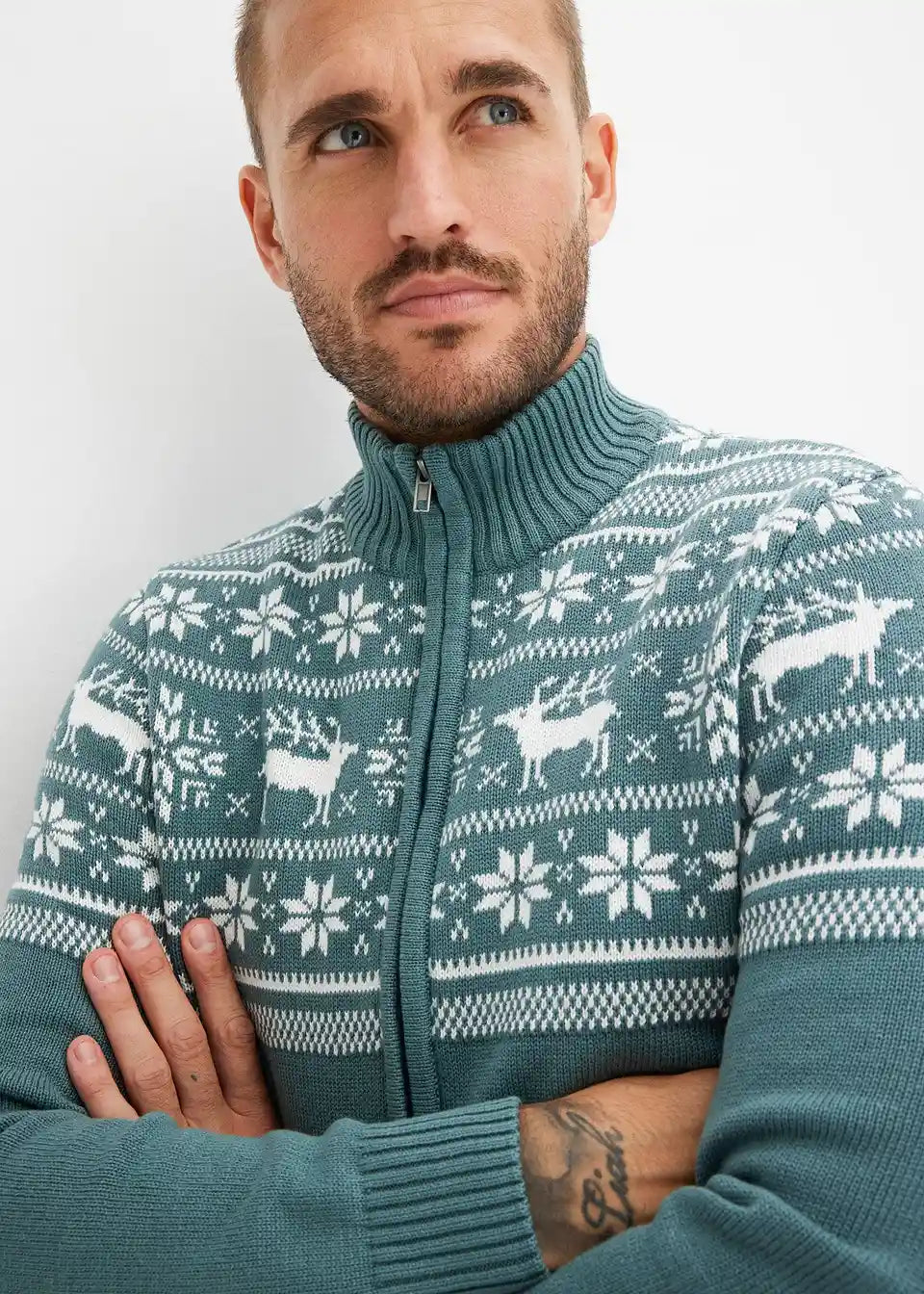 Angesagte Norweger-Strickjacke mit Bündchen an den Ärmeln und am Saum