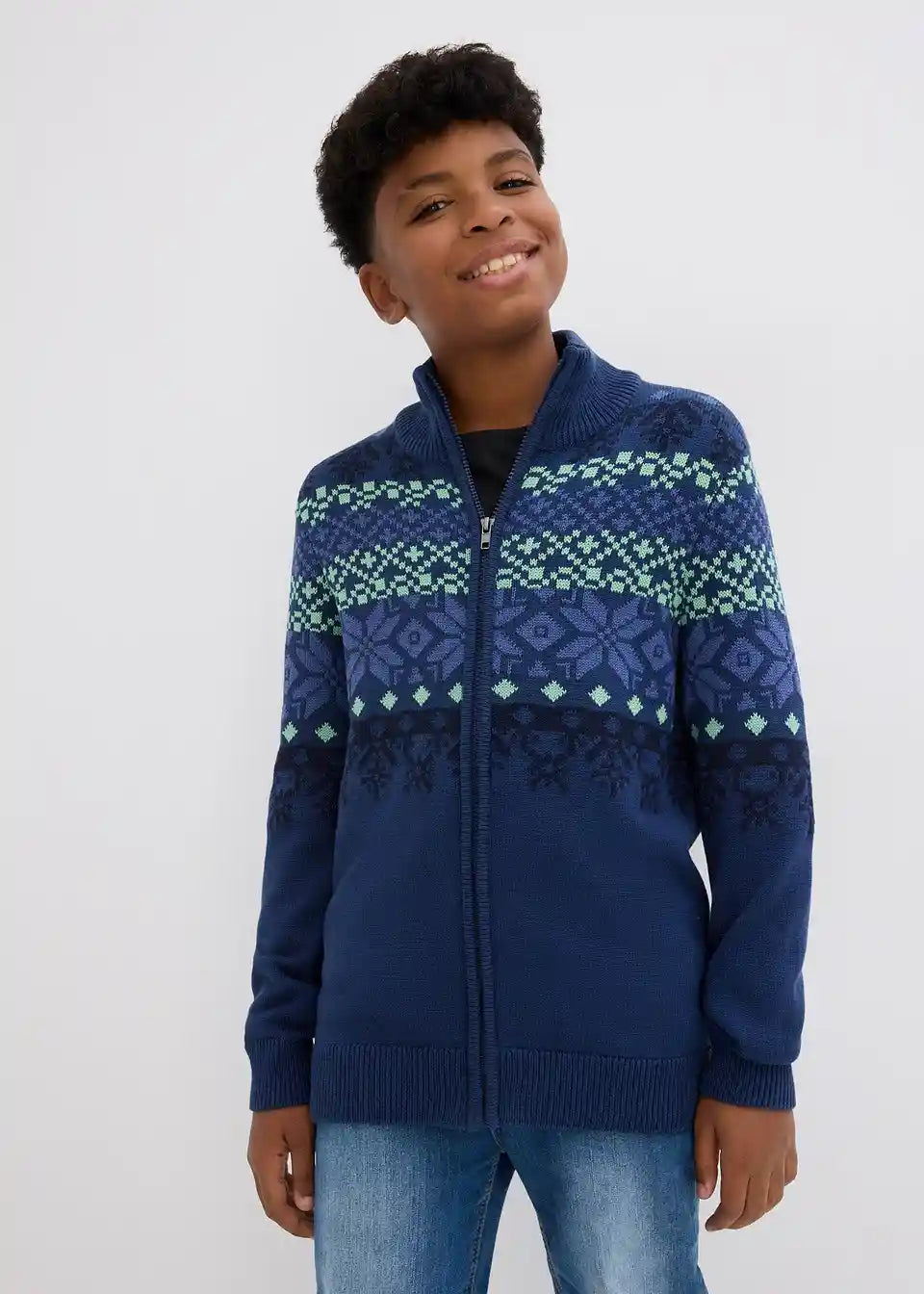 Jungen Norweger Strickjacke mit Stehkragen