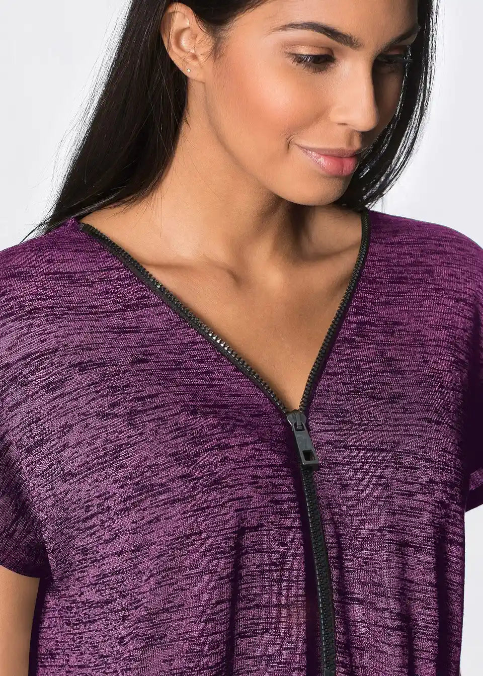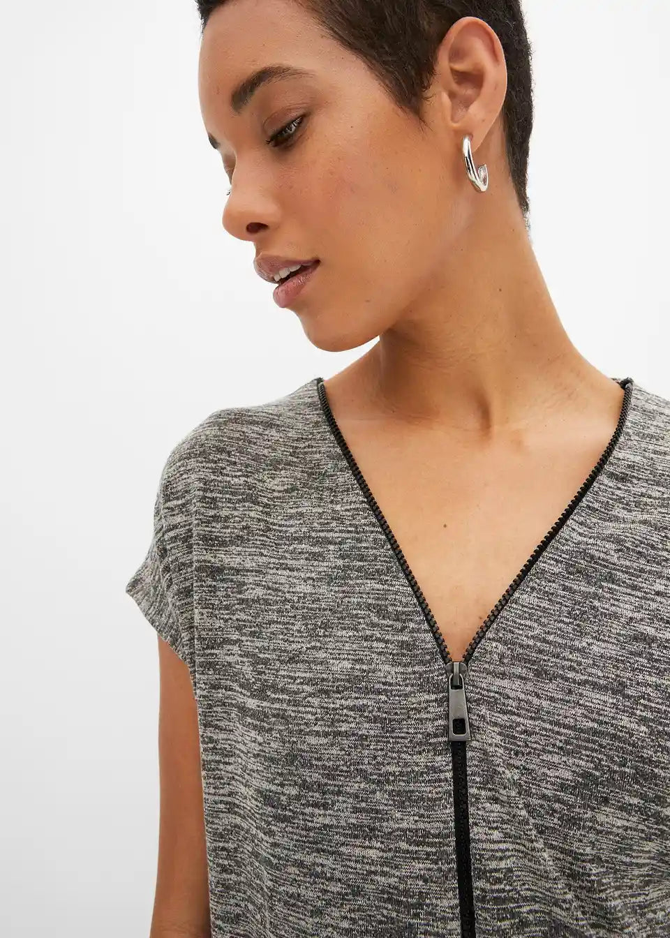 Hübsches Oversize-Shirt mit Reißverschluss und V-Ausschnitt