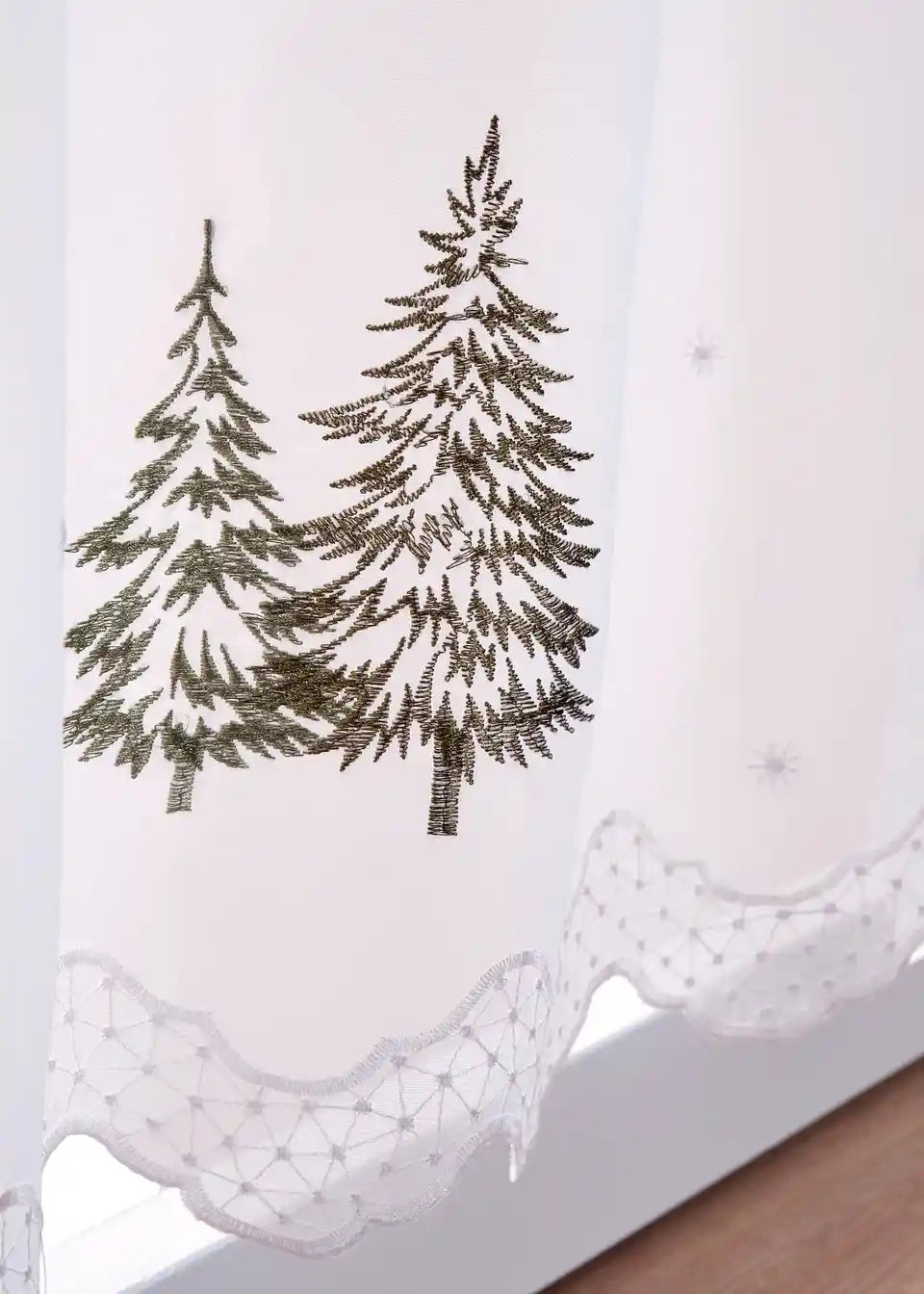 Scheibengardine mit Tannenbaum Stickerei