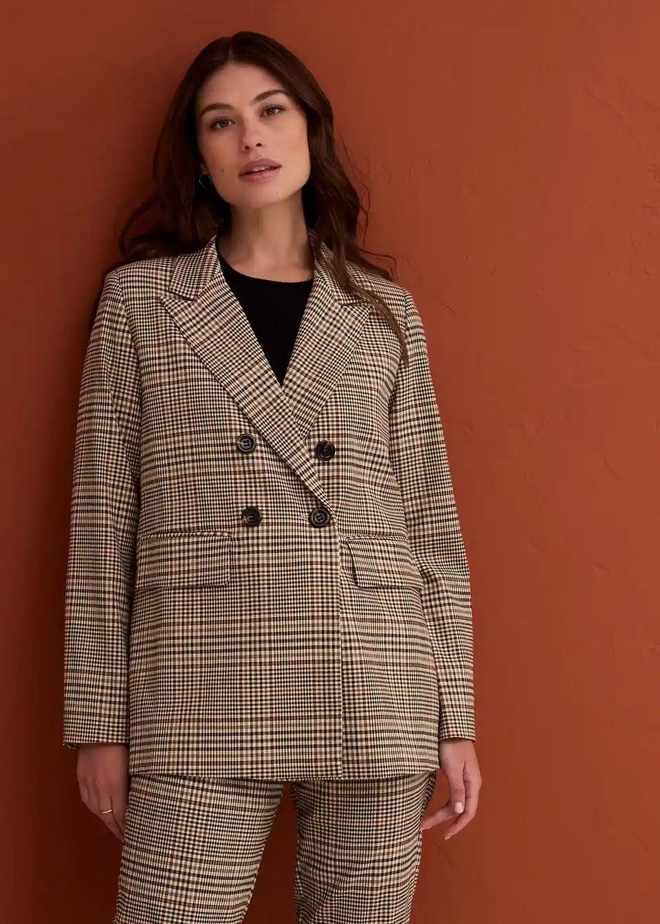 Material:Obermaterial: 34% Polyester, 33% Viskose, 32% Polyester (recycelt), 1% Elasthan, Futter: 55% Polyester (recycelt), 45% Viskose