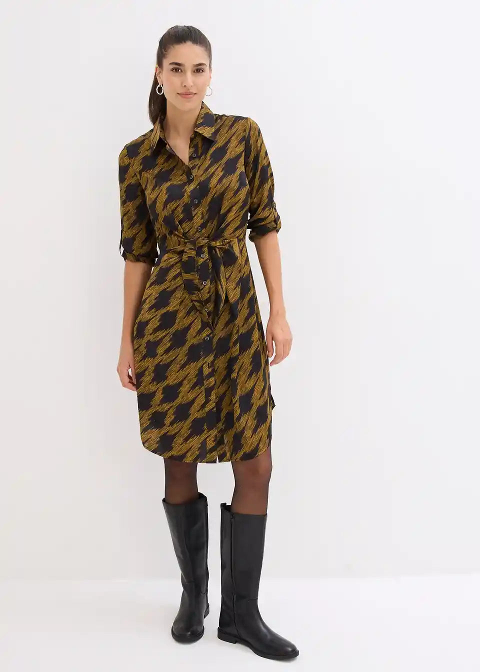 Schönes Satin Hemdblusenkleid mit modernen Leo-Druck