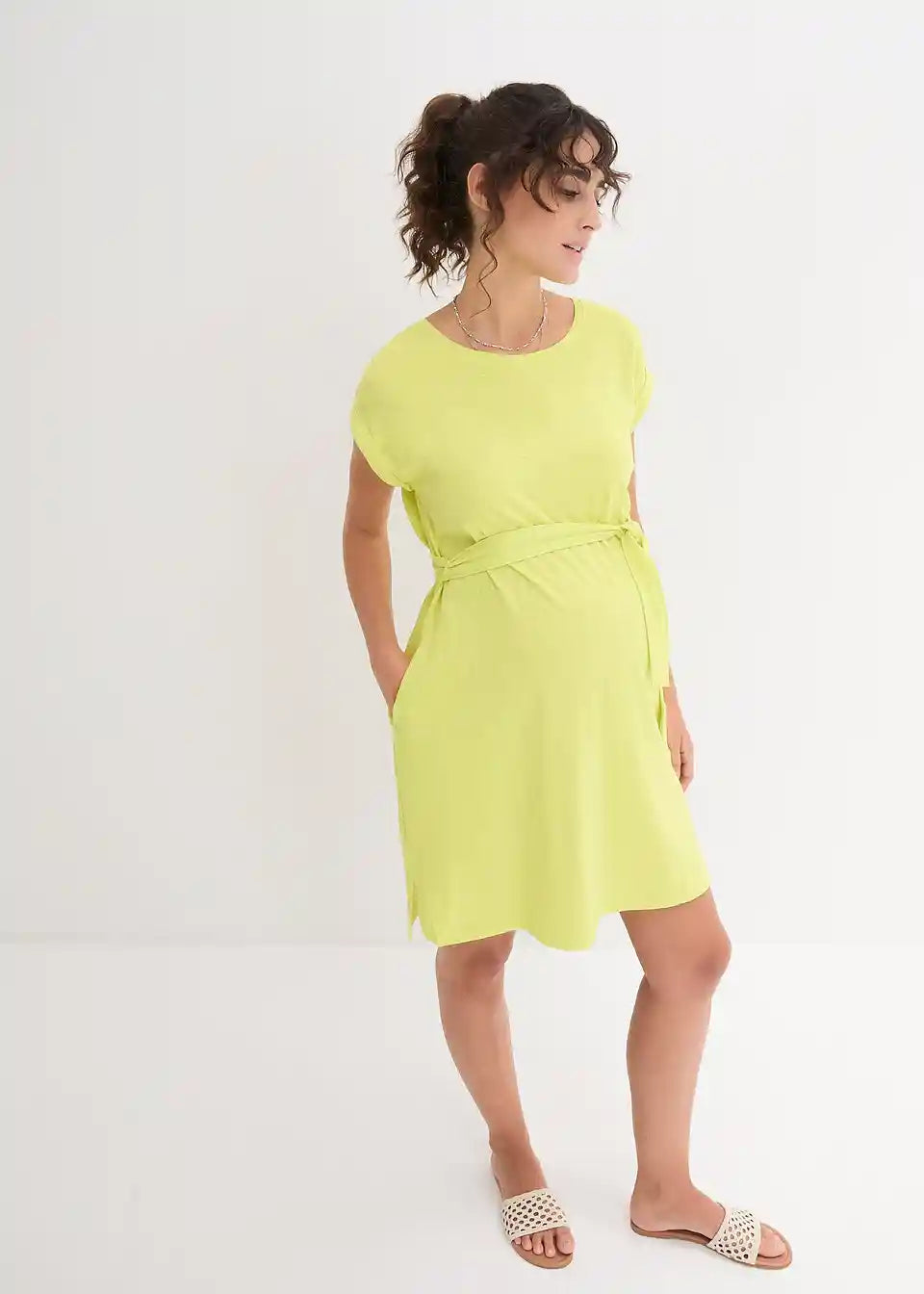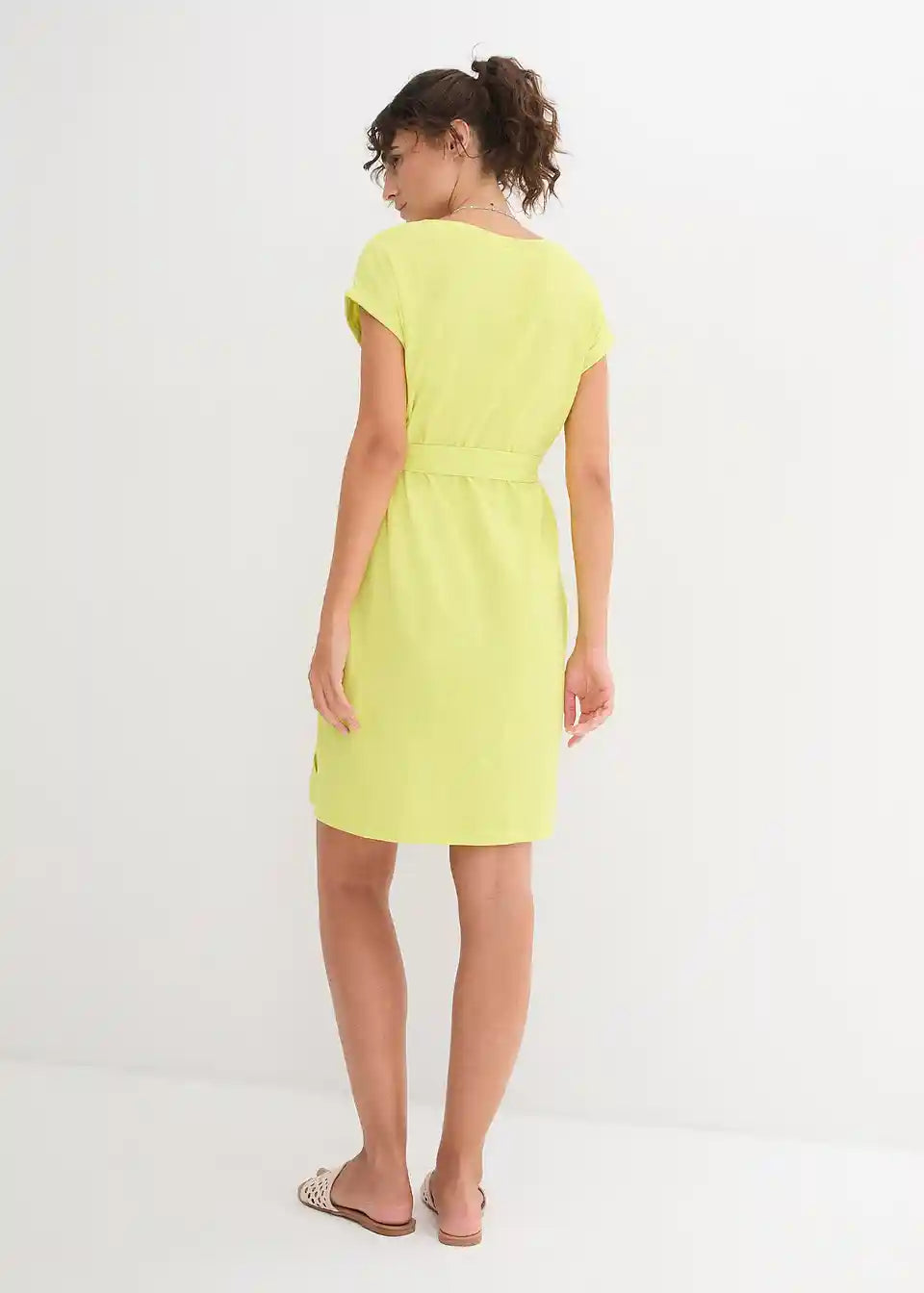 Baumwoll-Kleid mit Rundhals-Ausschnitt und Fledermausärmeln