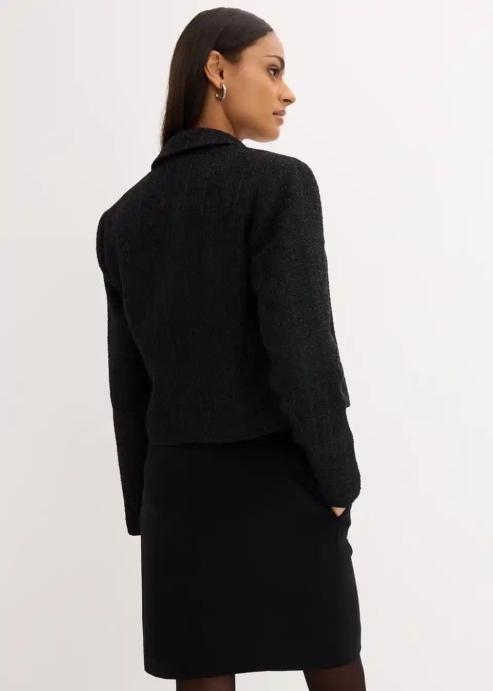 kurzer Blazer aus Bouclé mit dezenten Glanzakzenten und Metallknöpfen