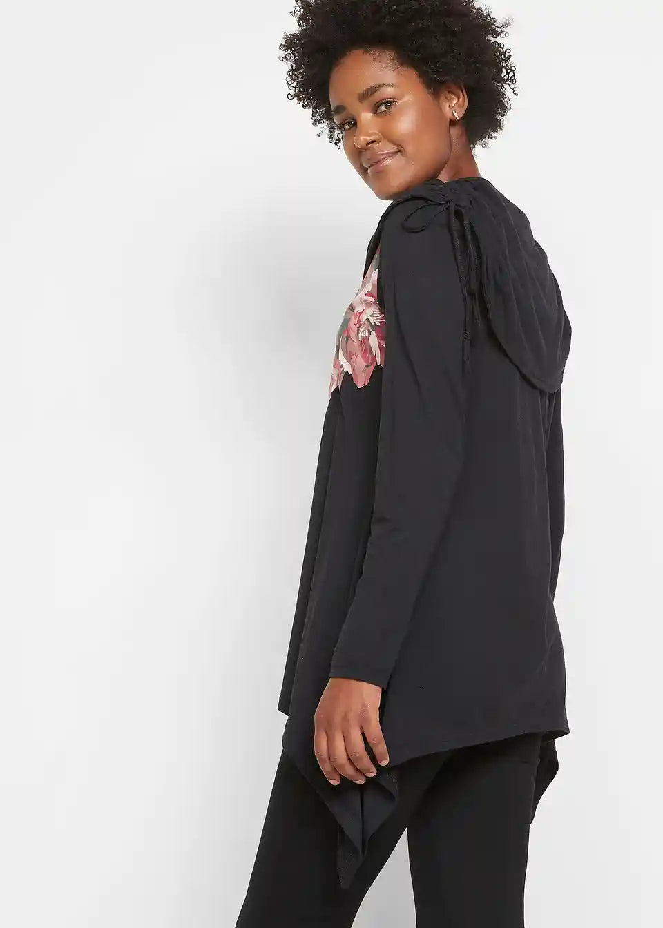 Shirt mit romantischem Rosendruck und Raffung am Ausschnitt