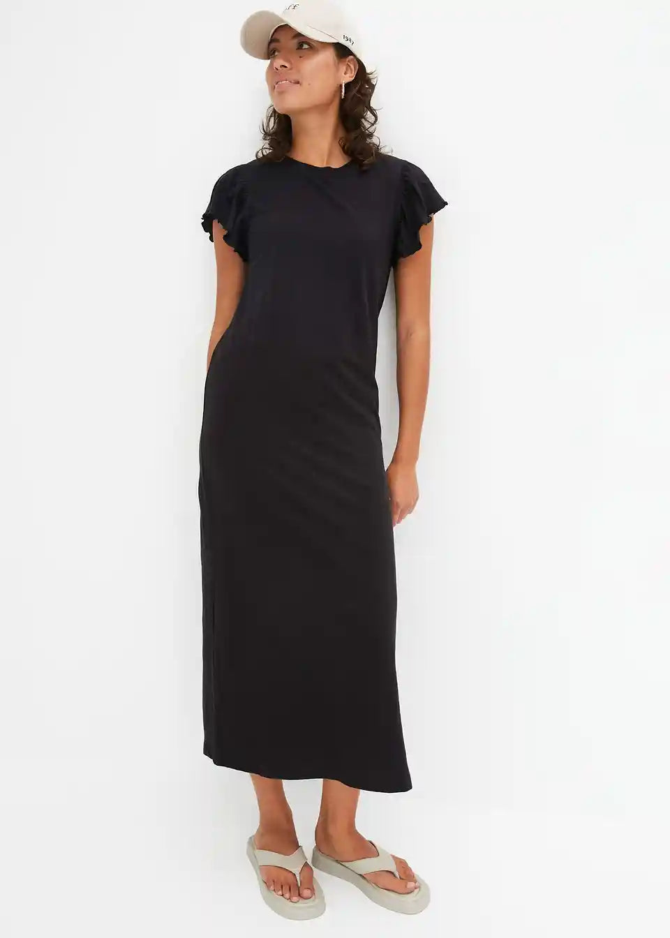 Midikleid aus Baumwolle mit Flügelärmeln und Schlitz