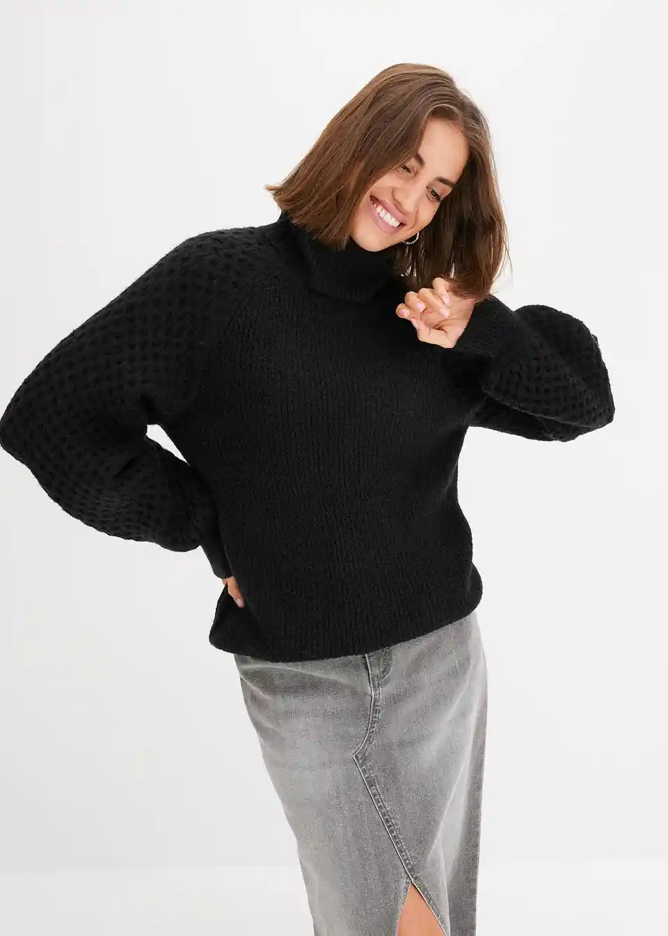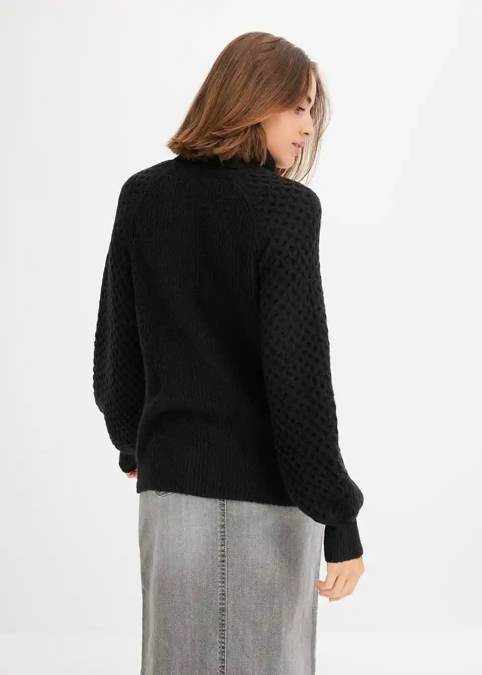 Trendiger Grobstrick-Pullover mit hohem Kragen