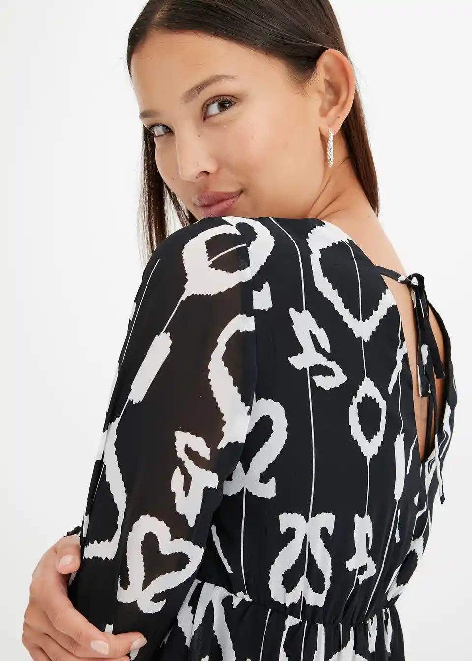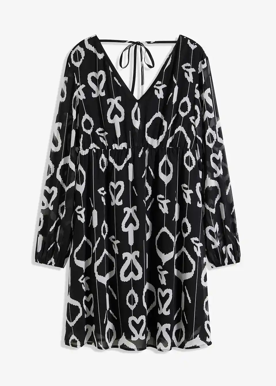 Kurzes Chiffonkleid mit V-Ausschnitt und langen Ärmeln