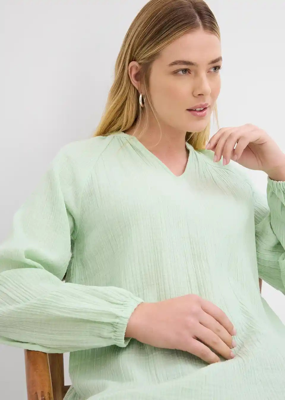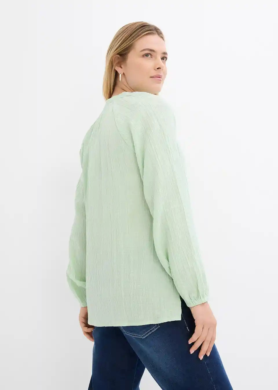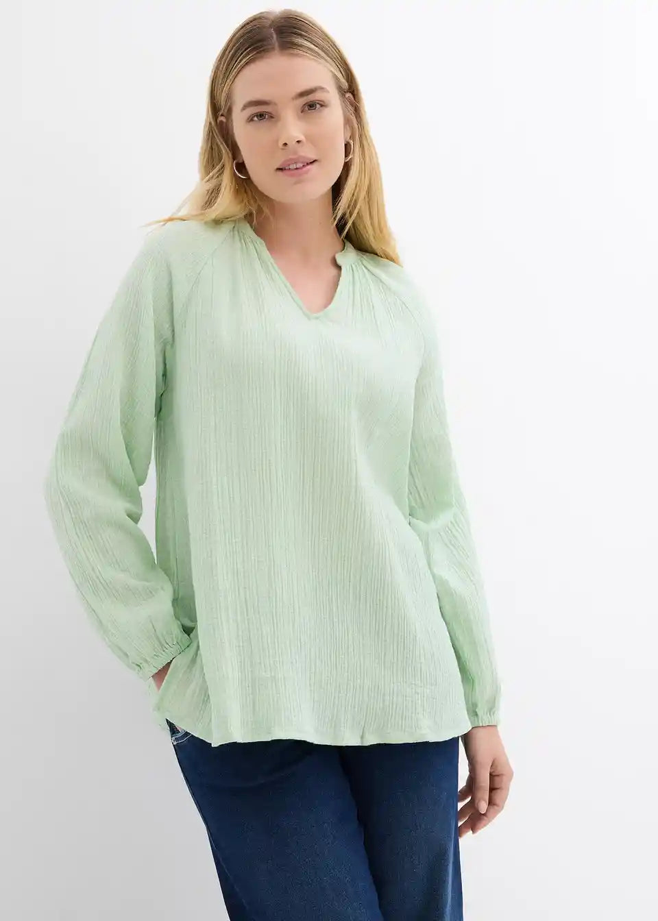 Langarm-Tunika aus Musselin mit V-Ausschnitt