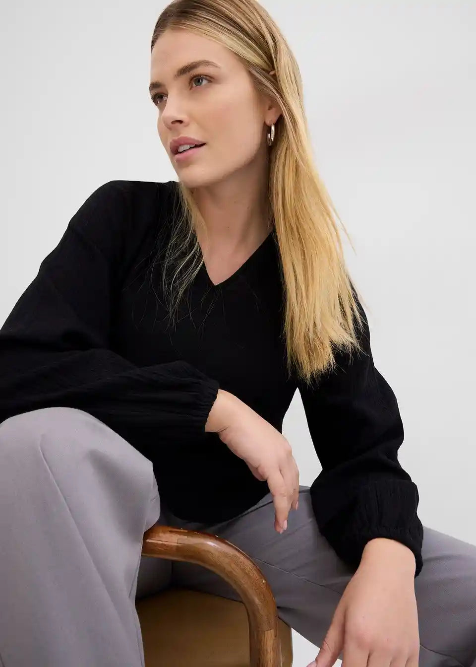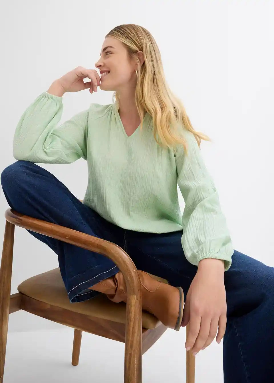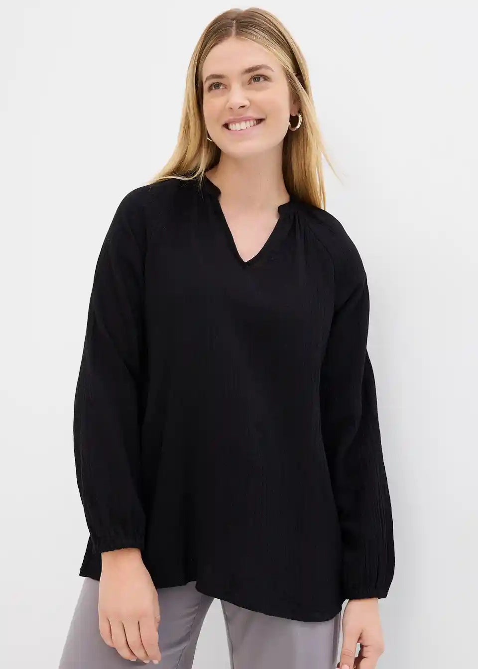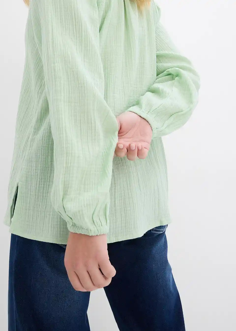 Langarm-Tunika aus Musselin mit V-Ausschnitt