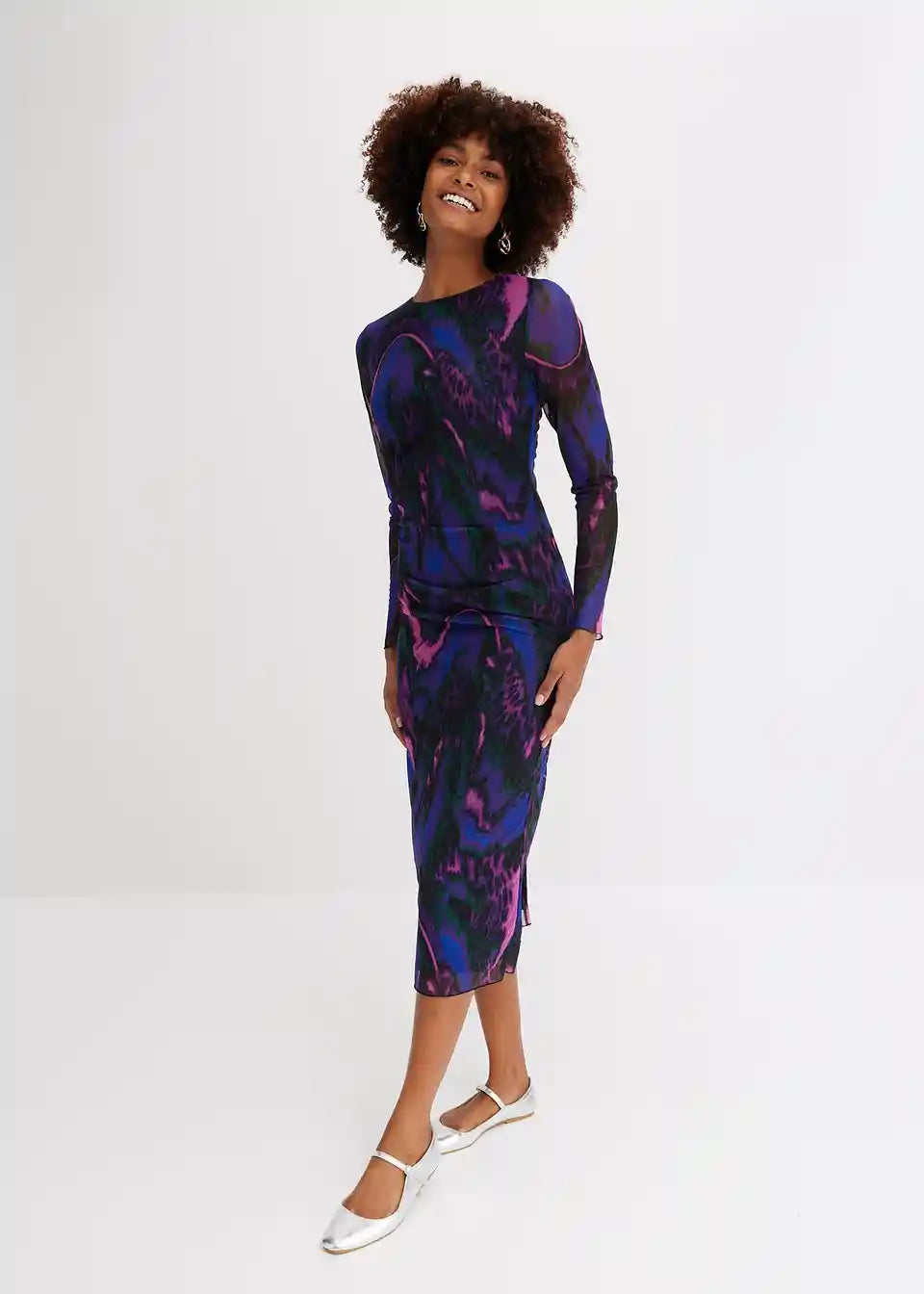 Modern und feminin: Midikleid aus luftigem Mesh, durch seinen Allover-Print mach es jedes Teil zu einem Unikat.