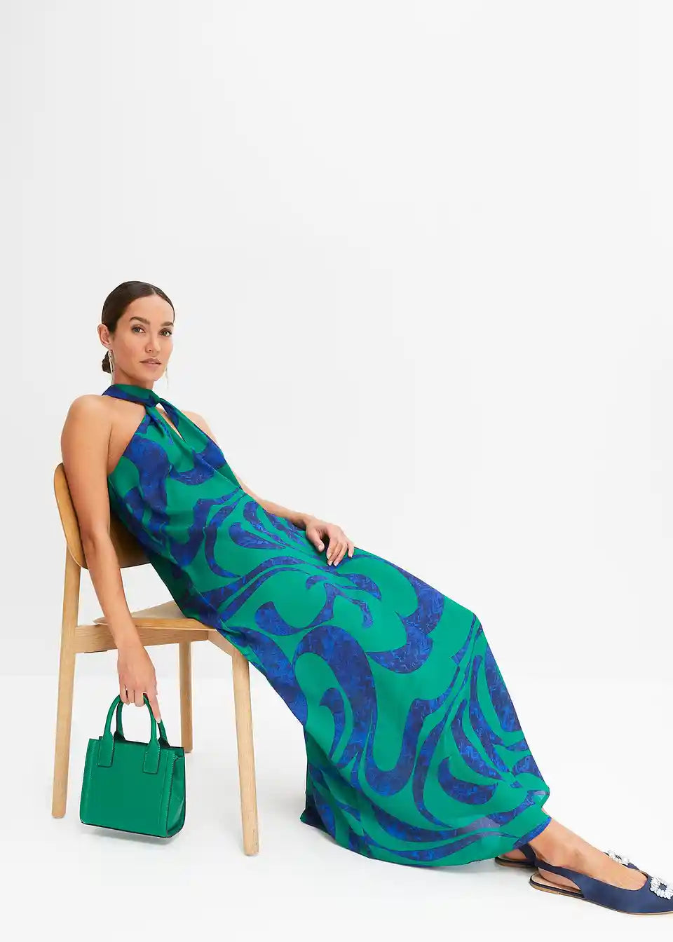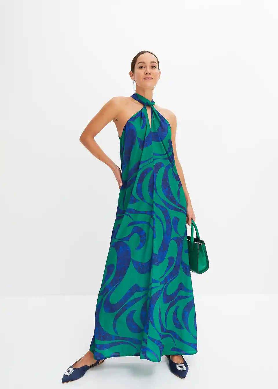 Elegantes Neckholder Maxikleid mit modernem Druck