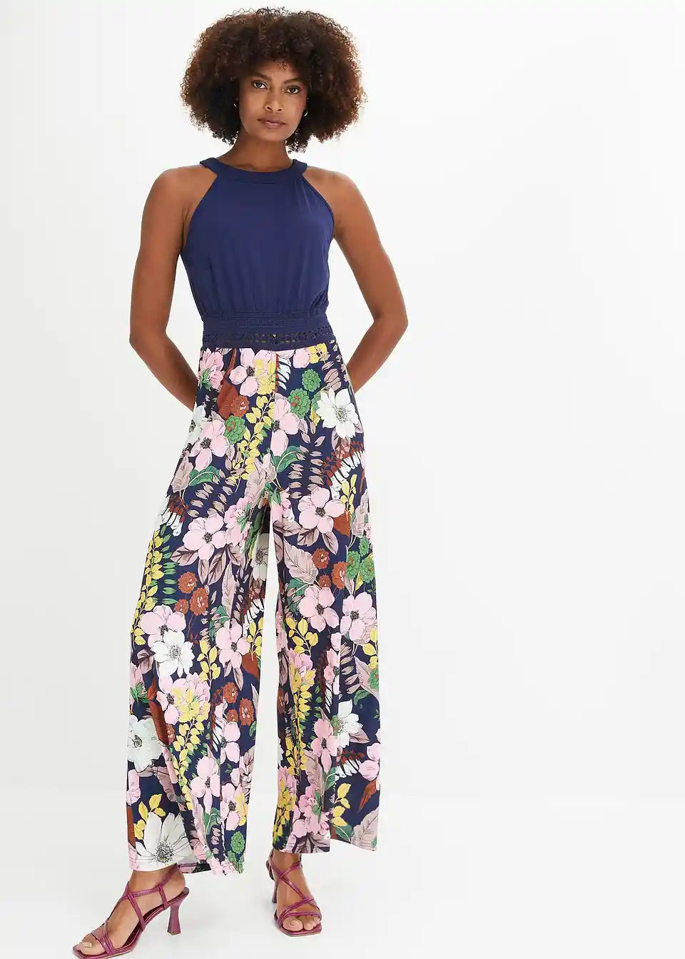 Moderner Jumpsuit mit weitem Bein und schönem Muster