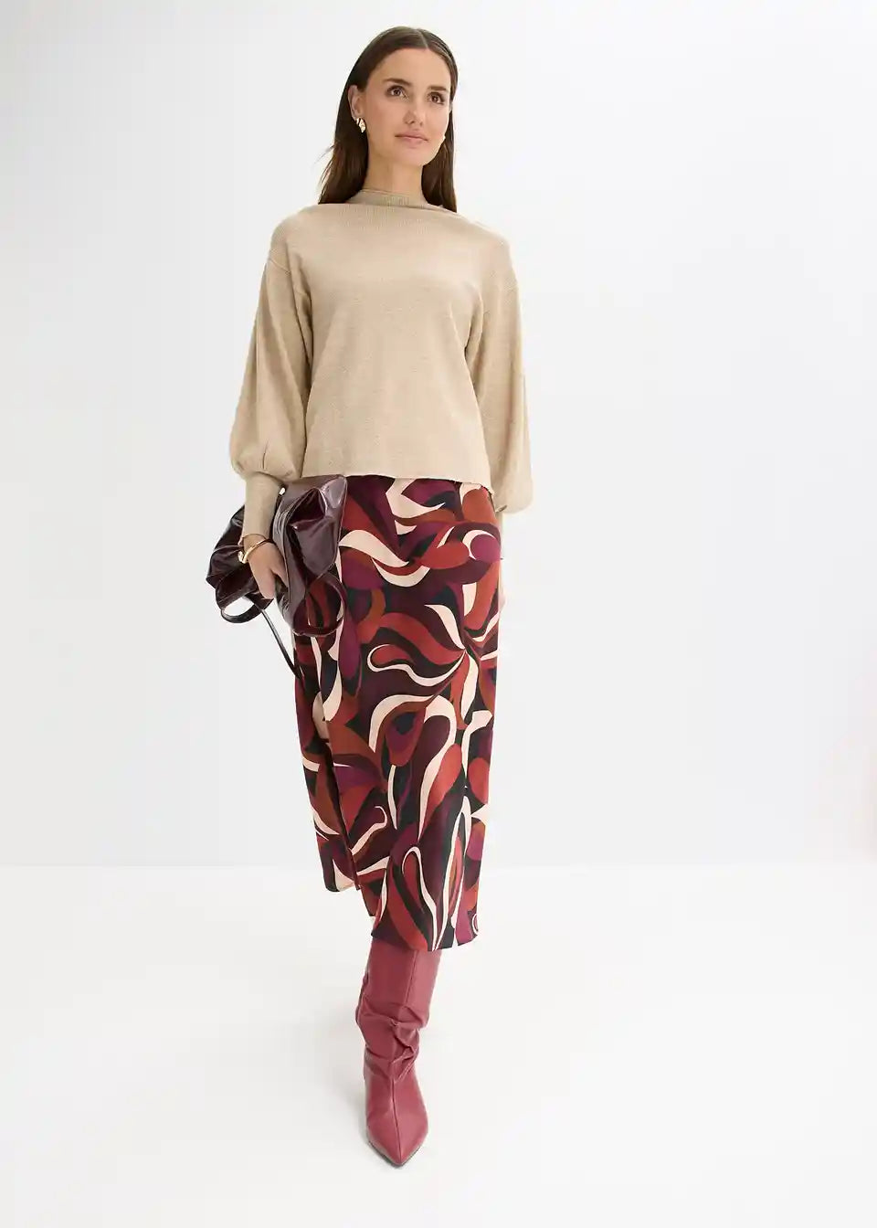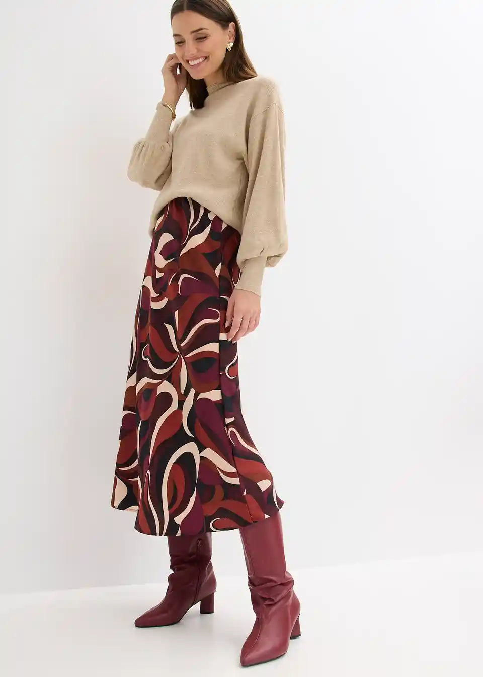 modischer Midirock aus fließendem Satin mit Gummibund innen