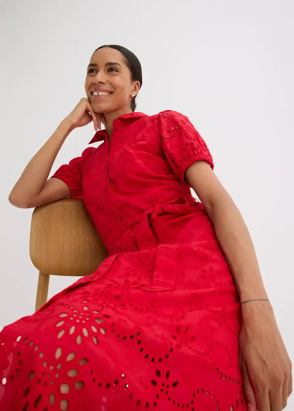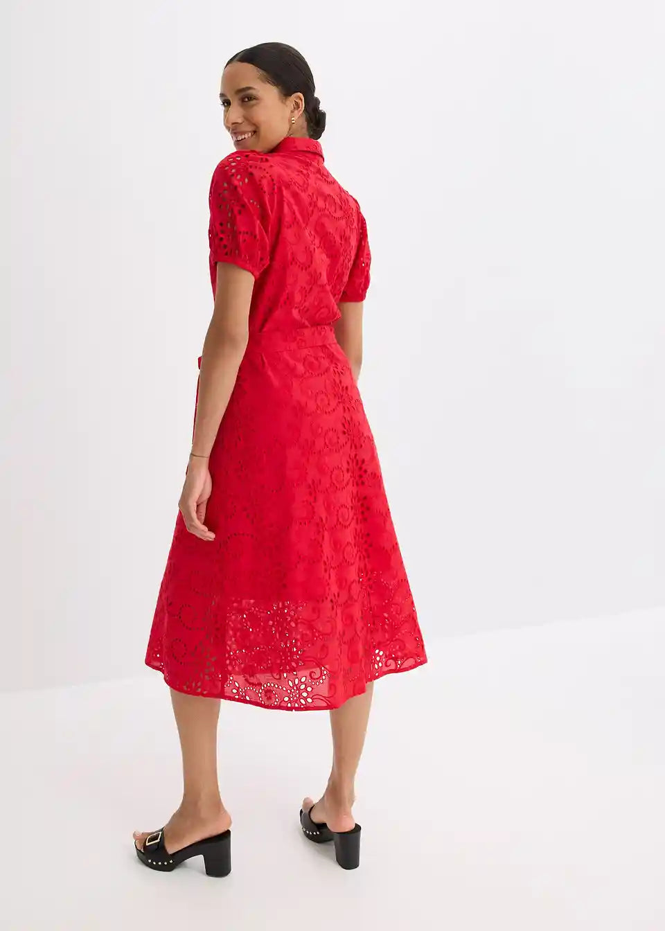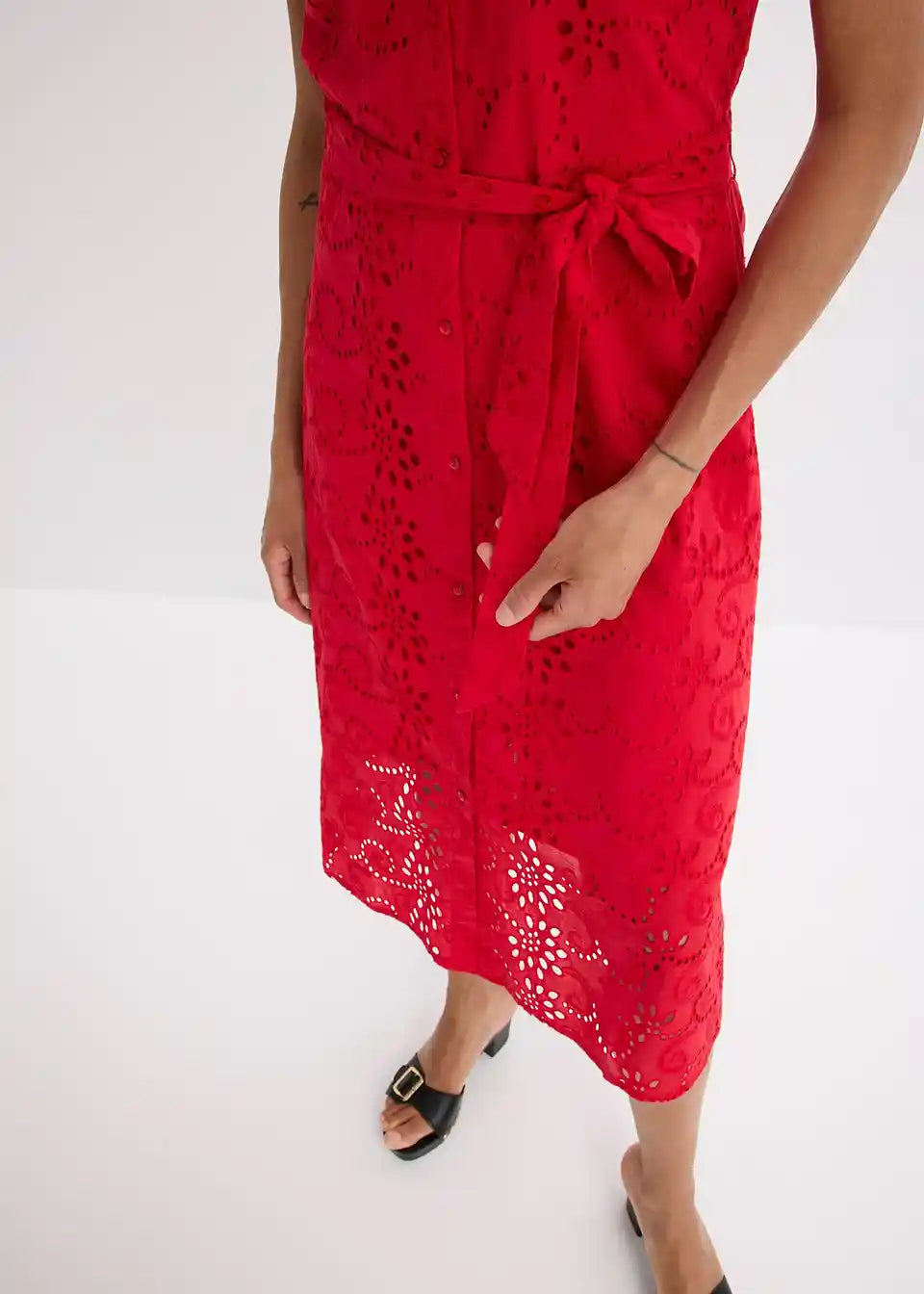 Lochstickerei-Blusenkleid aus reiner Baumwolle