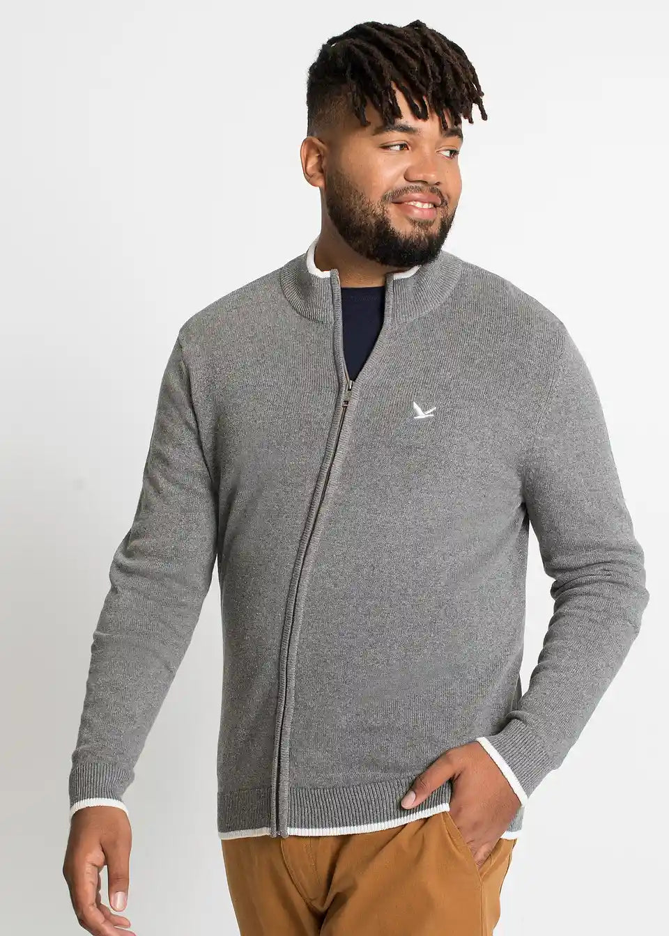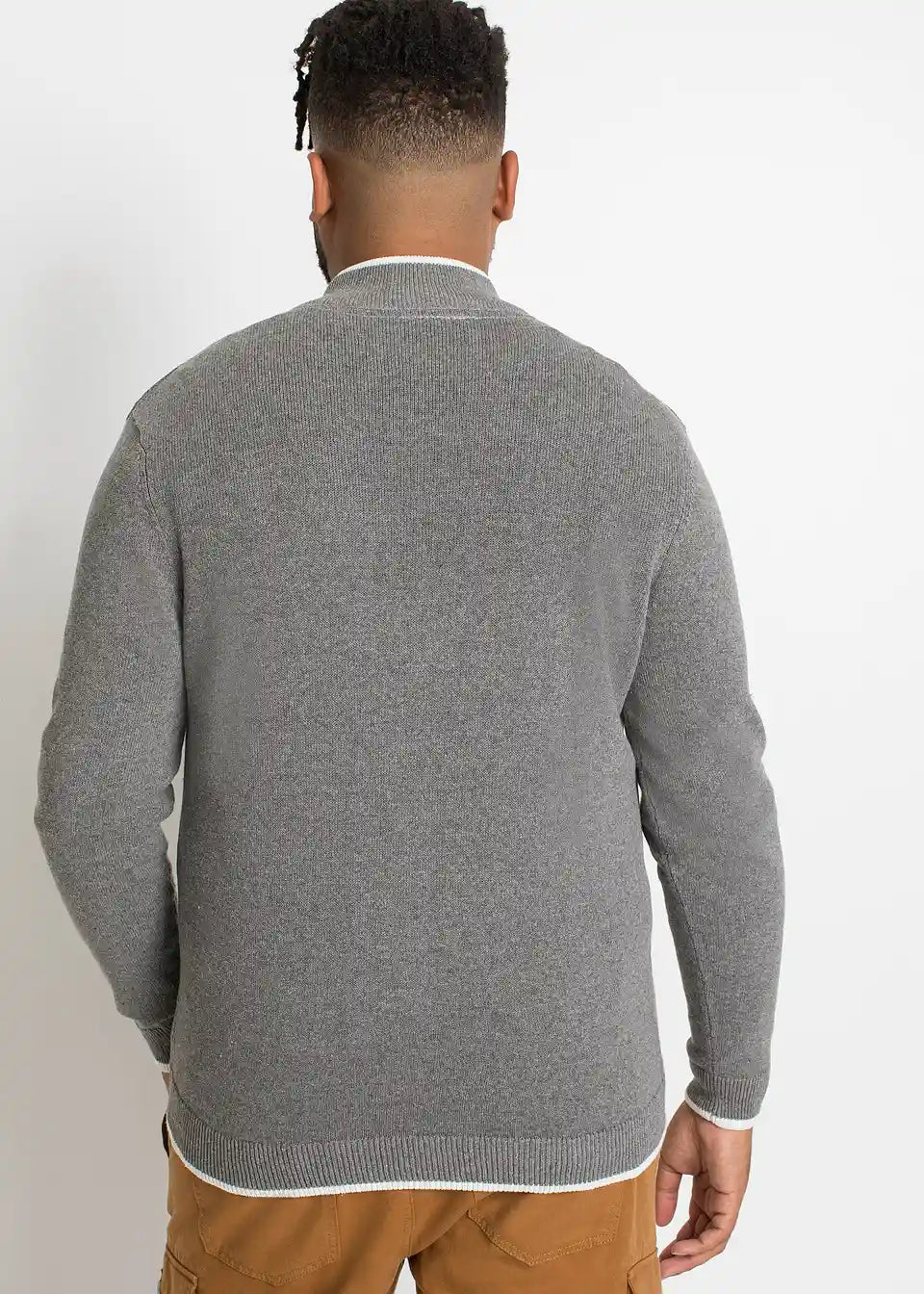 Feinstrickjacke mit Stehkragen und recycelter Baumwolle