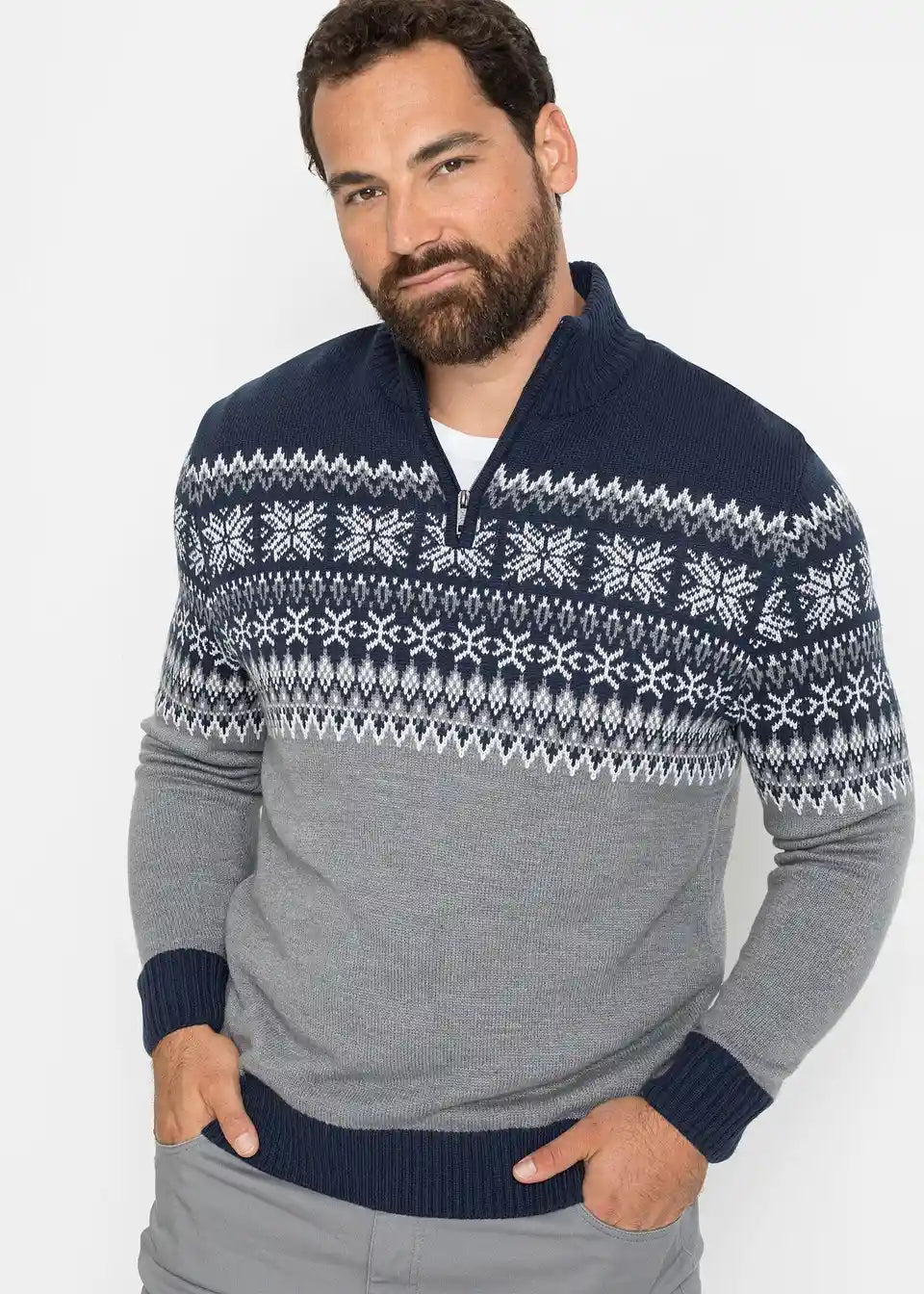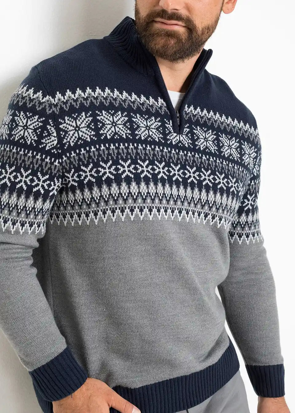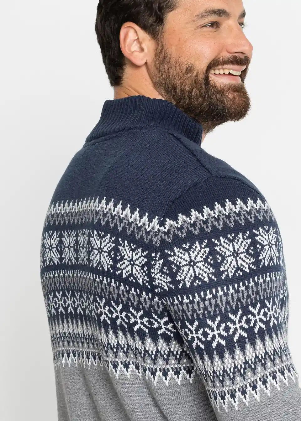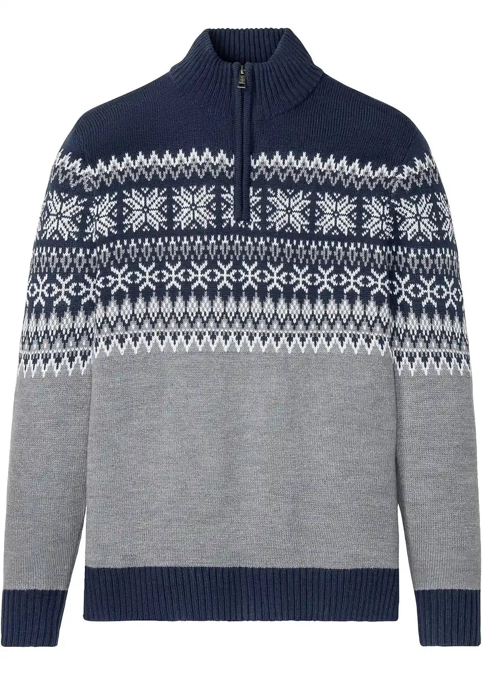 Hübscher Norweger Pullover mit Stehkragen und Reißverschluss
