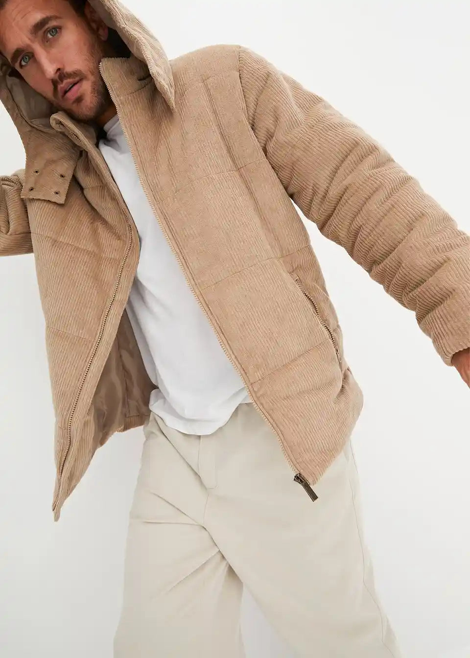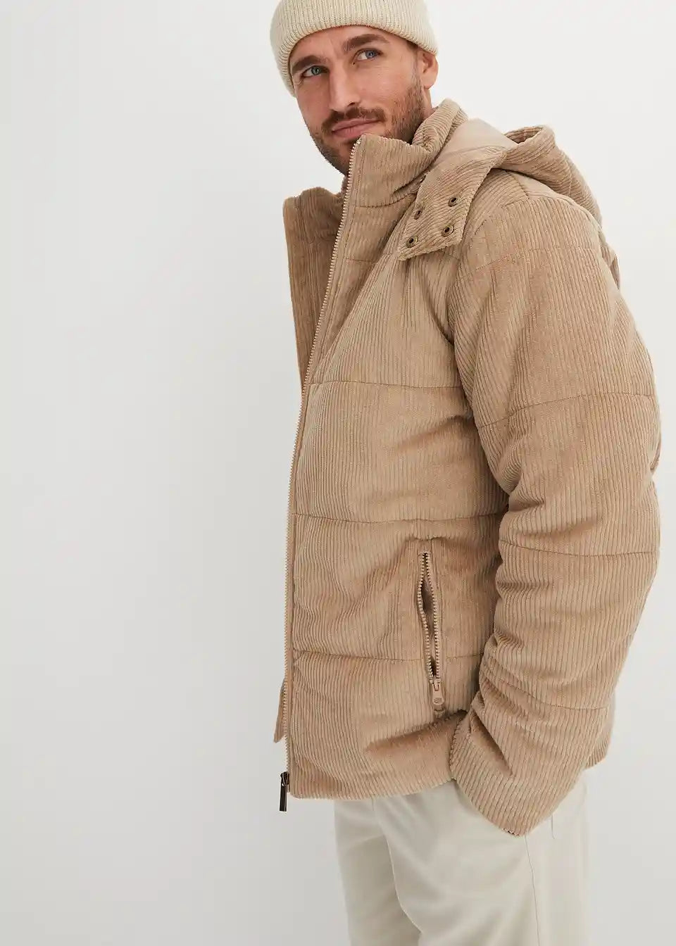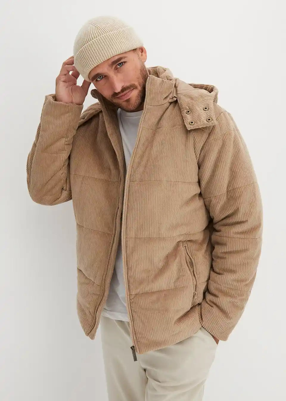 Cord-Steppjacke mit abnehmbarer Kapuze