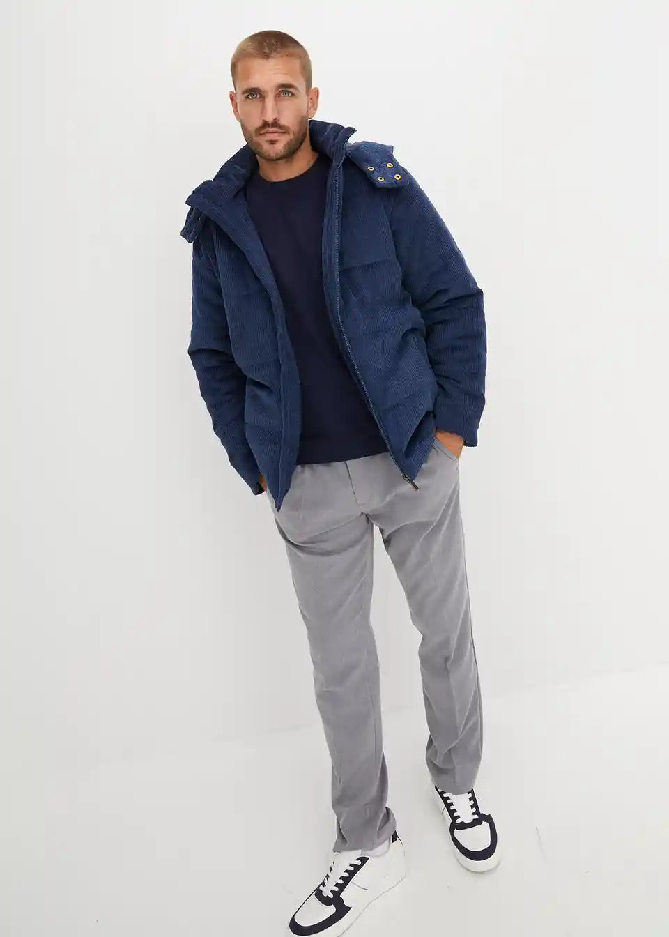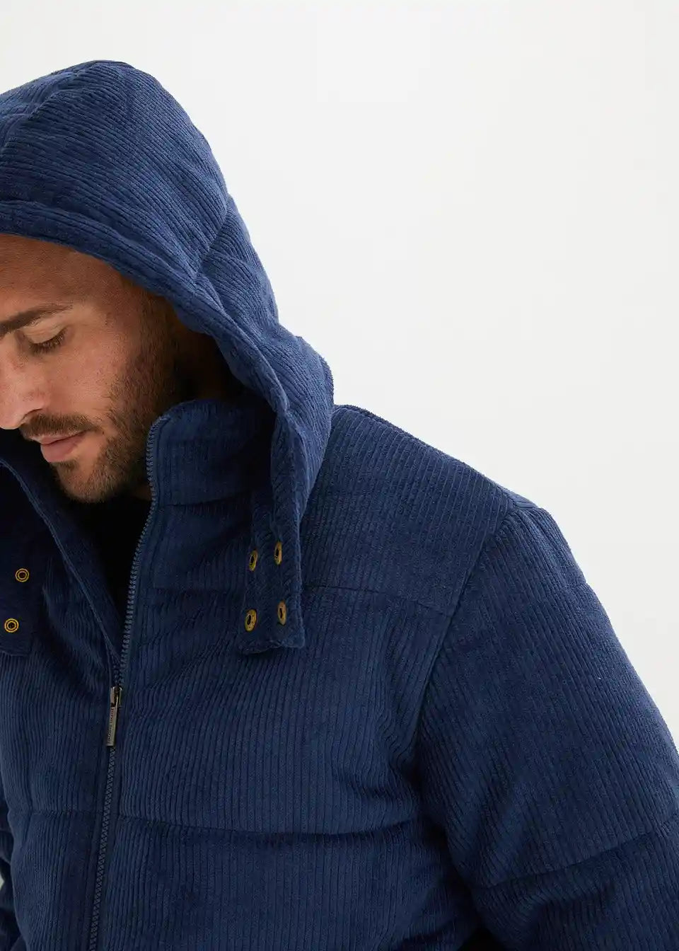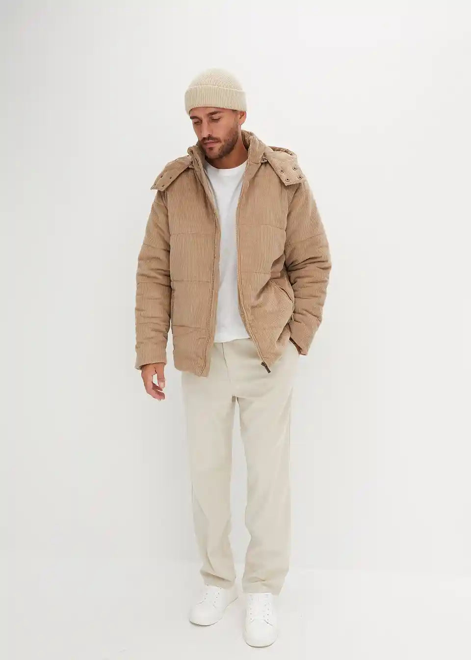 Cord-Steppjacke mit abnehmbarer Kapuze