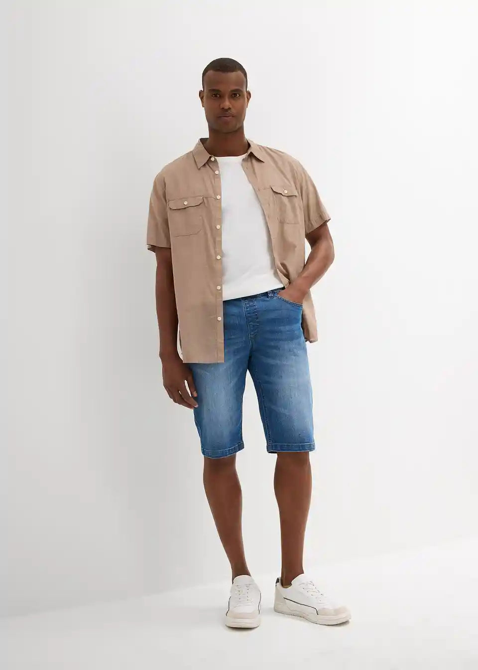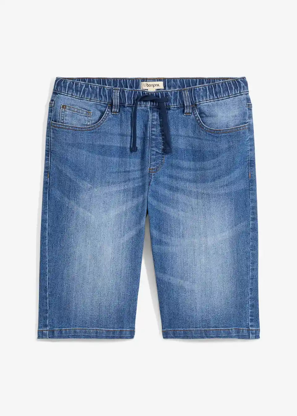 Bequeme Schlupf-Sweat-Jeansbermuda mit Rundum-Gummizug und leichter Waschung