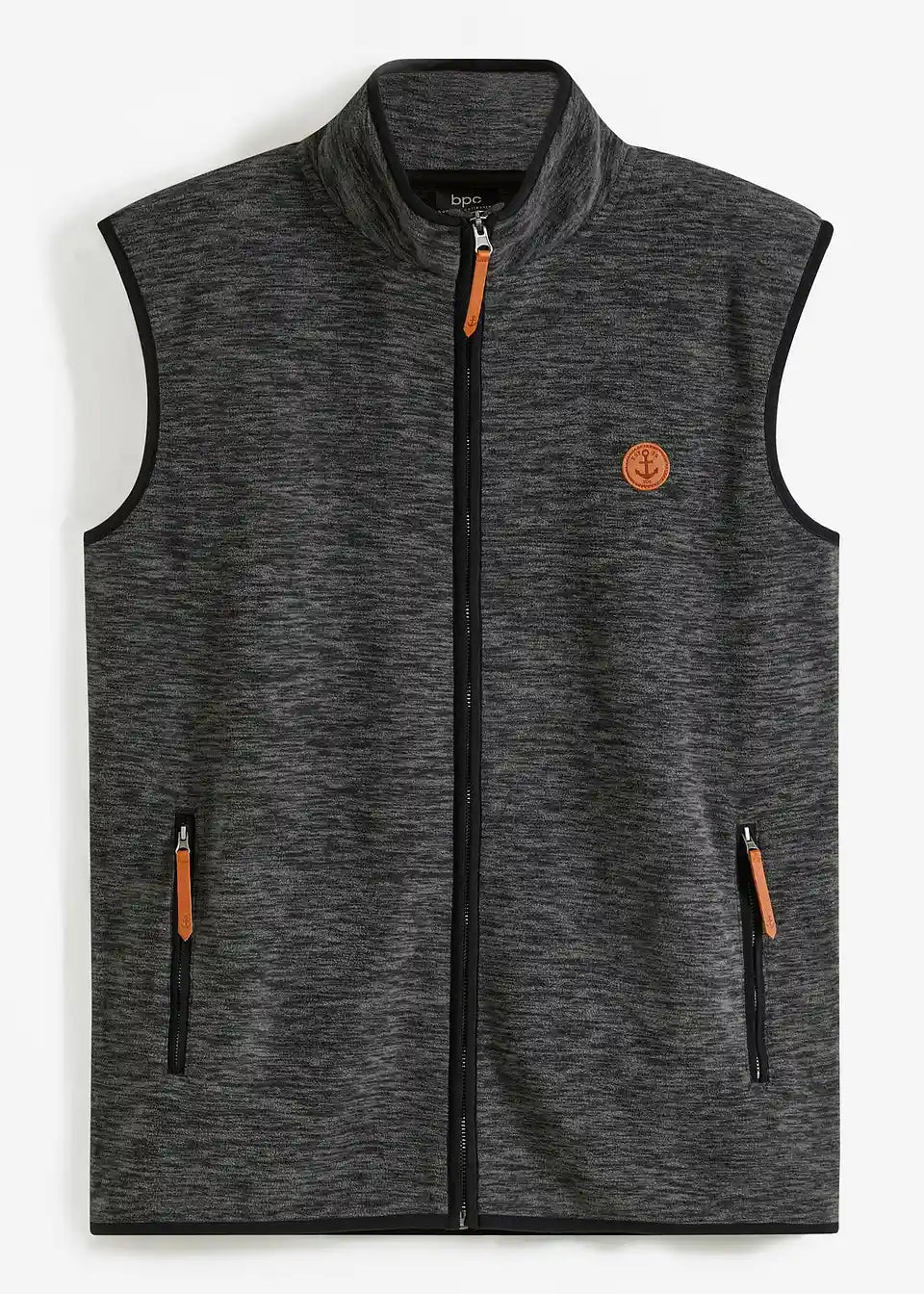 Fleece Weste mit Stehkragen und schönen Lederimitat-Details