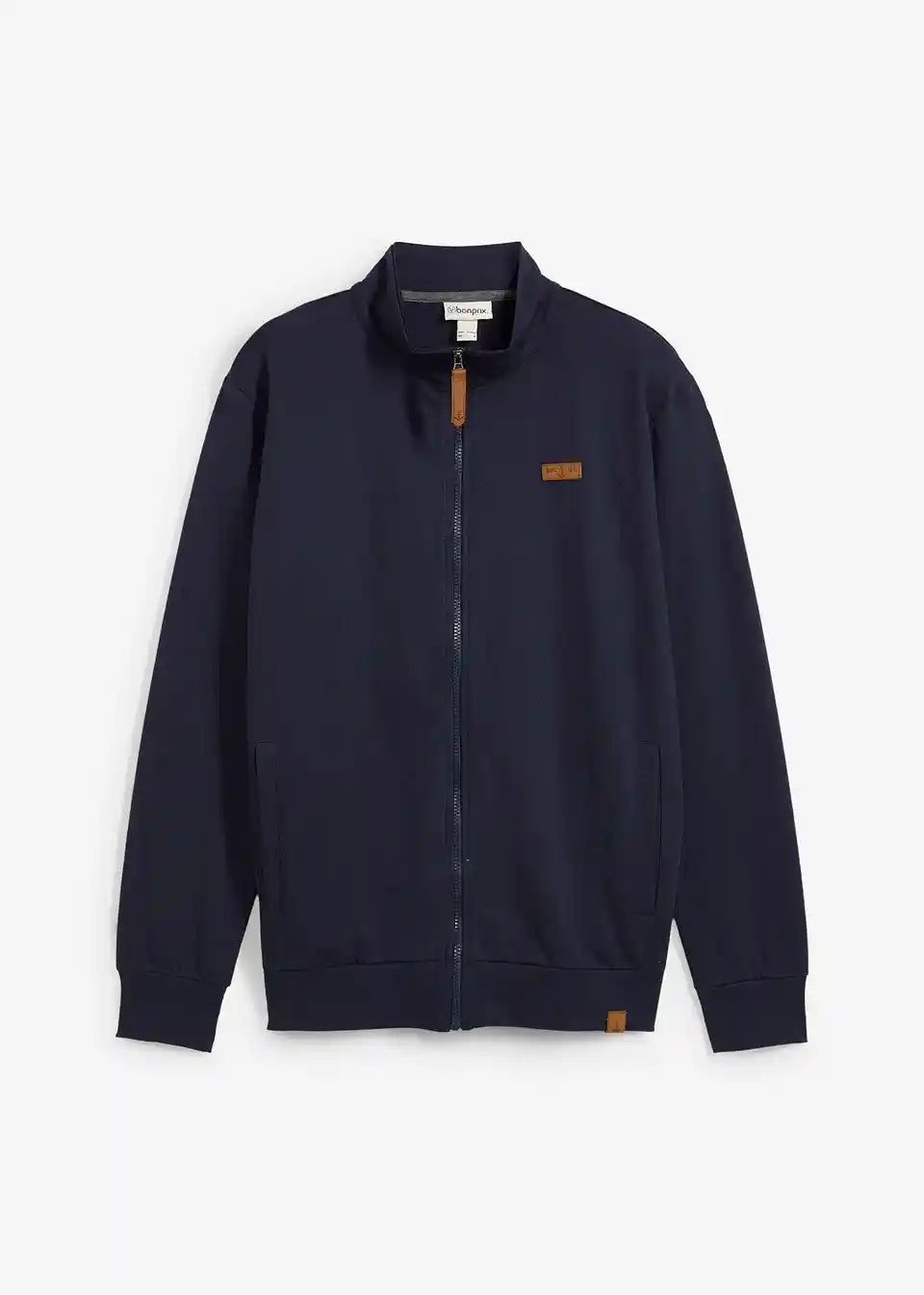 Sweatjacke mit schönen Lederimitat-Details und Stehkragen