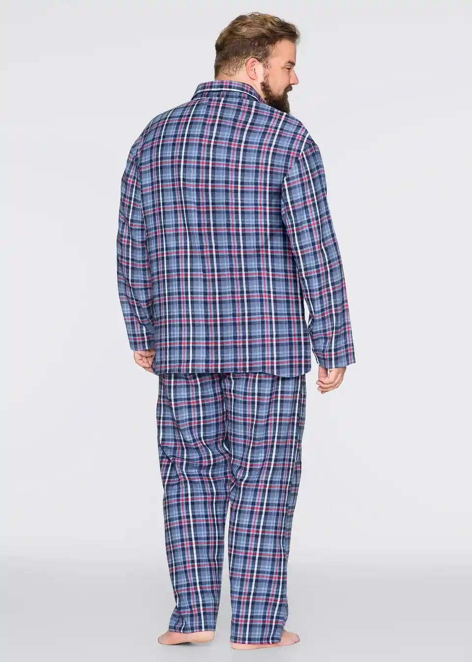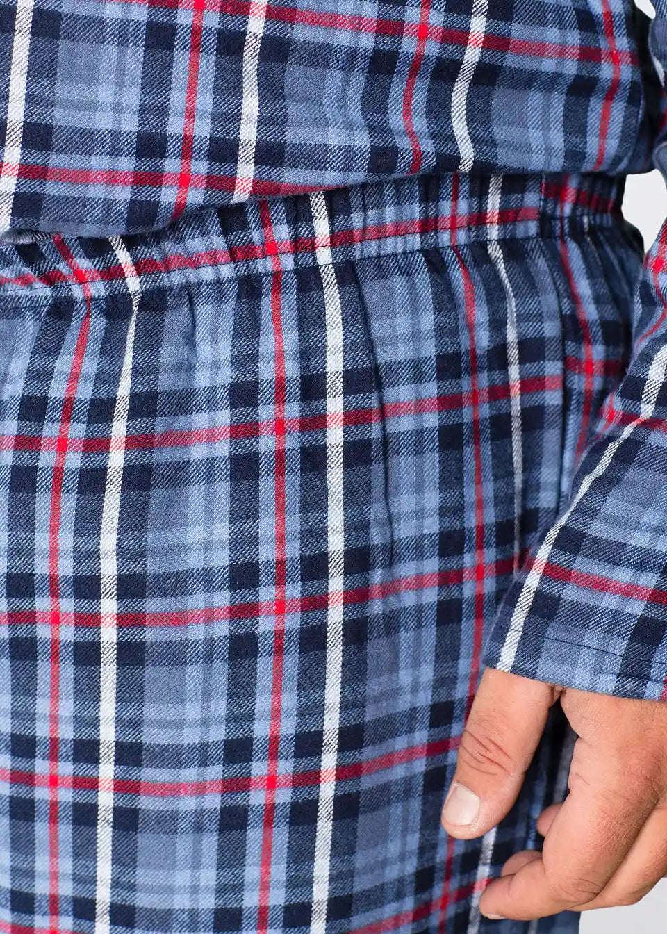 Komfortabel und modisch - weicher Herren Flanell Pyjama in Webqualität mit Knopfleiste und langer Hose.