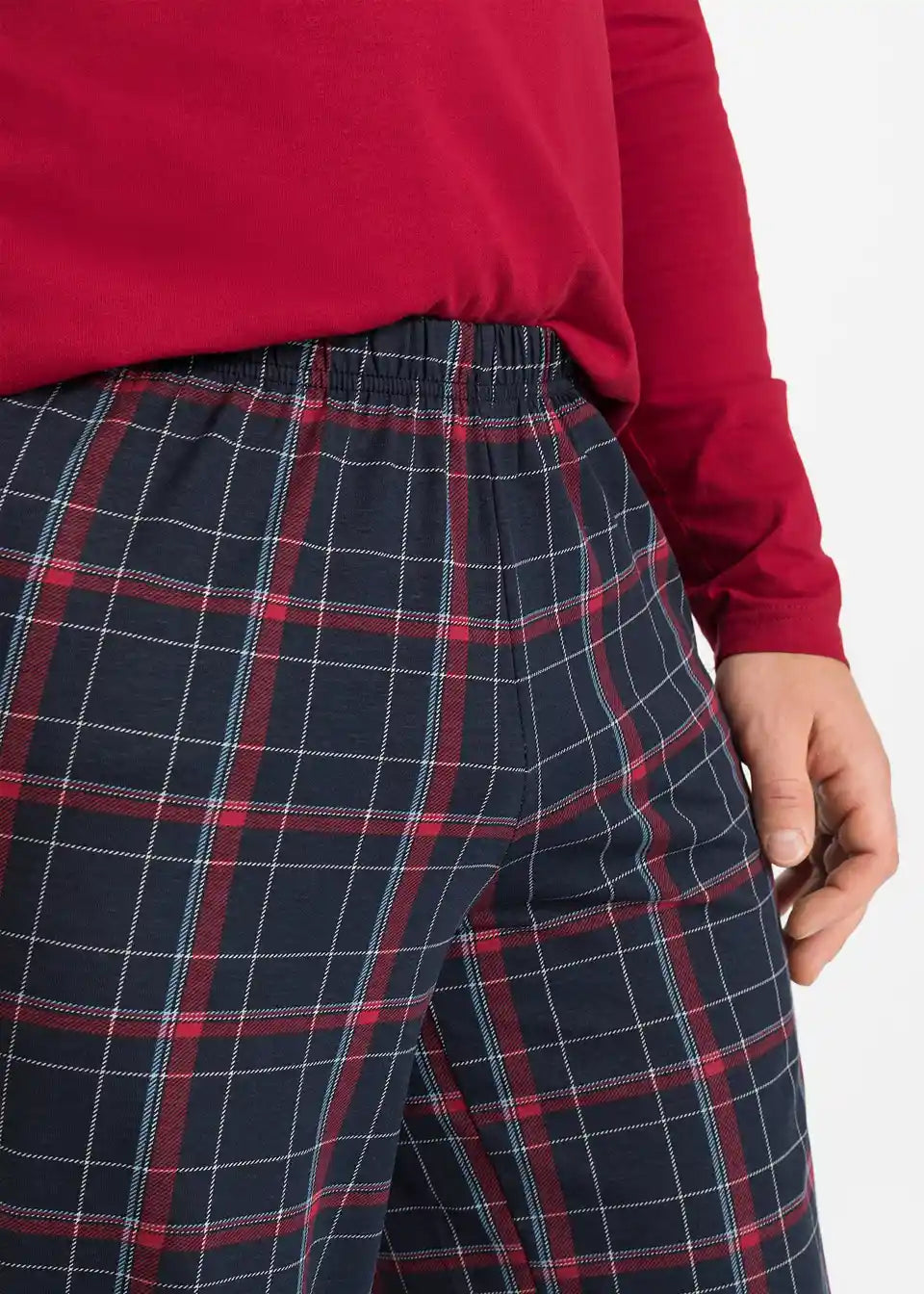 Dieser Herren Pyjama ist der ideale Begleiter für die Nacht. Das Pyjama Shirt hat lange Ärmel und einen Rundhalsausschnitt. Die Hose mit Gummibund setzt farbliche Kontraste.