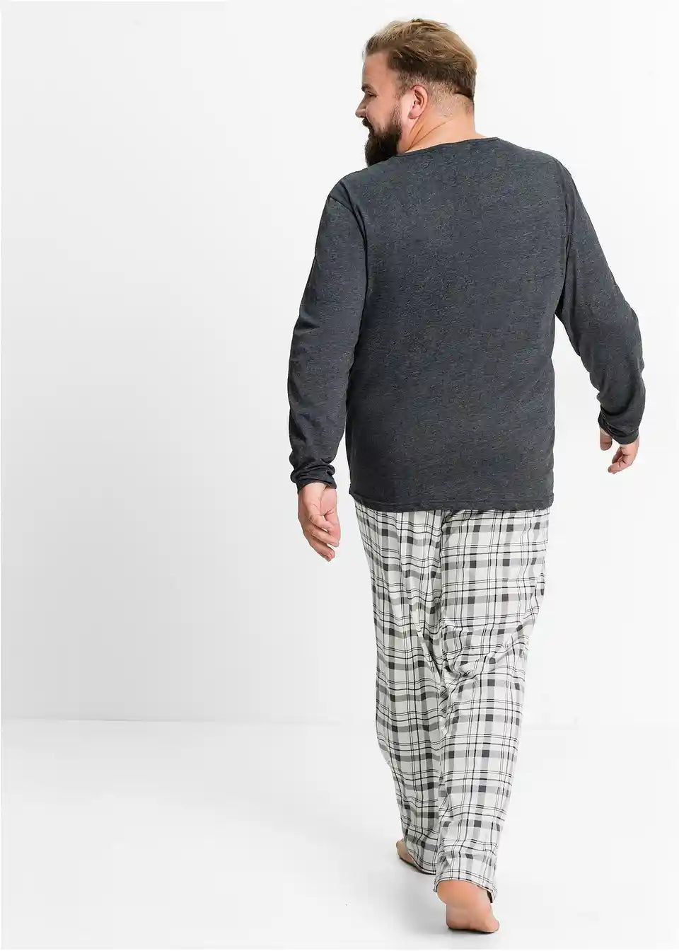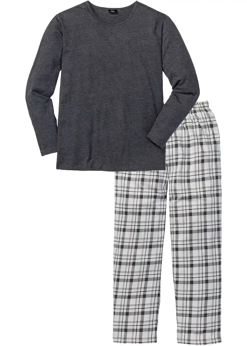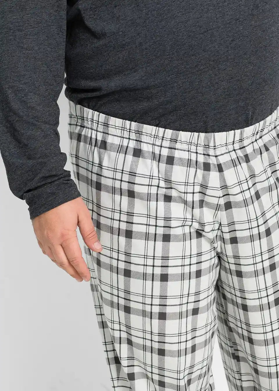 Shirt schlicht, Hose mit Karodruck und elastischem Bund.