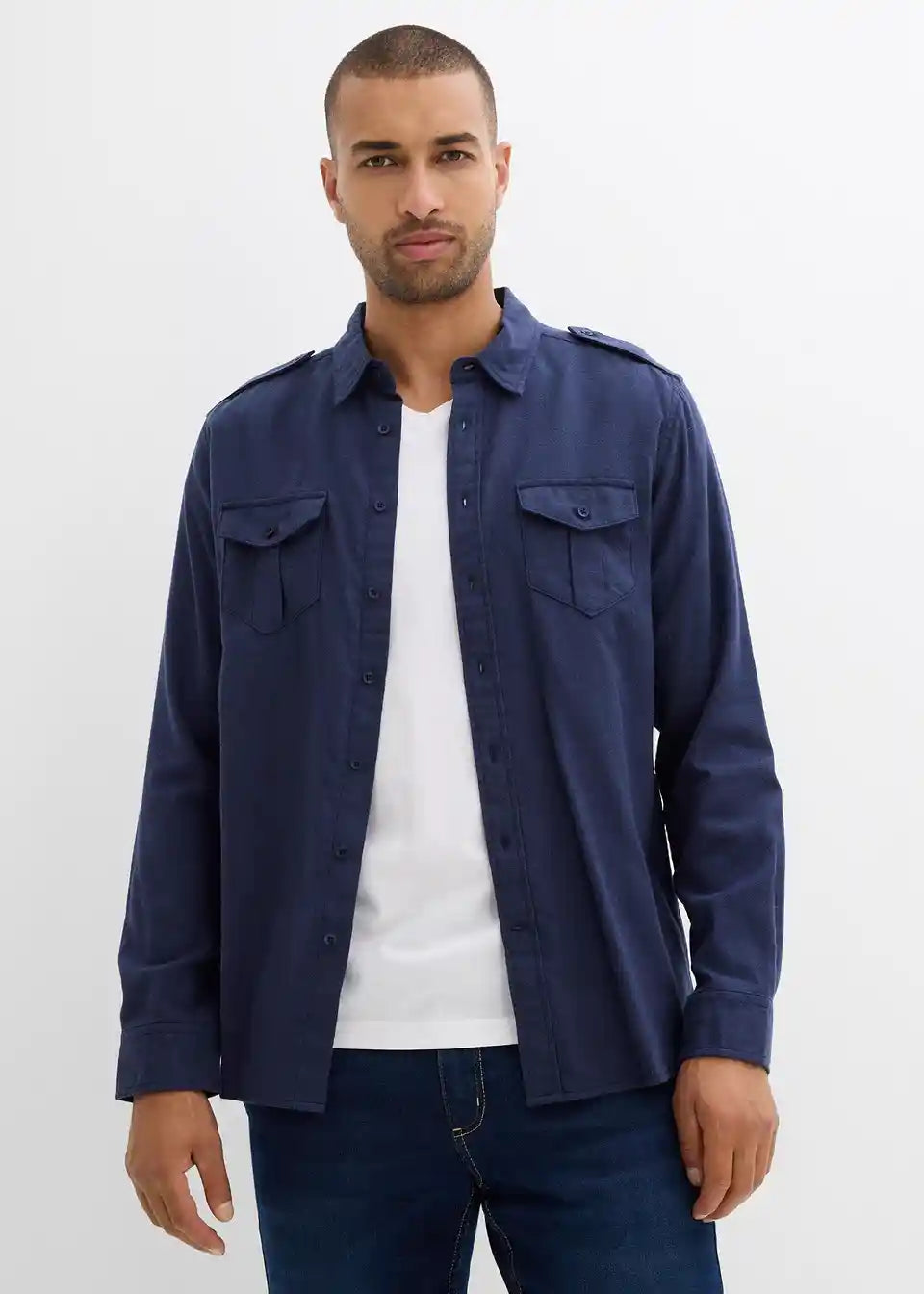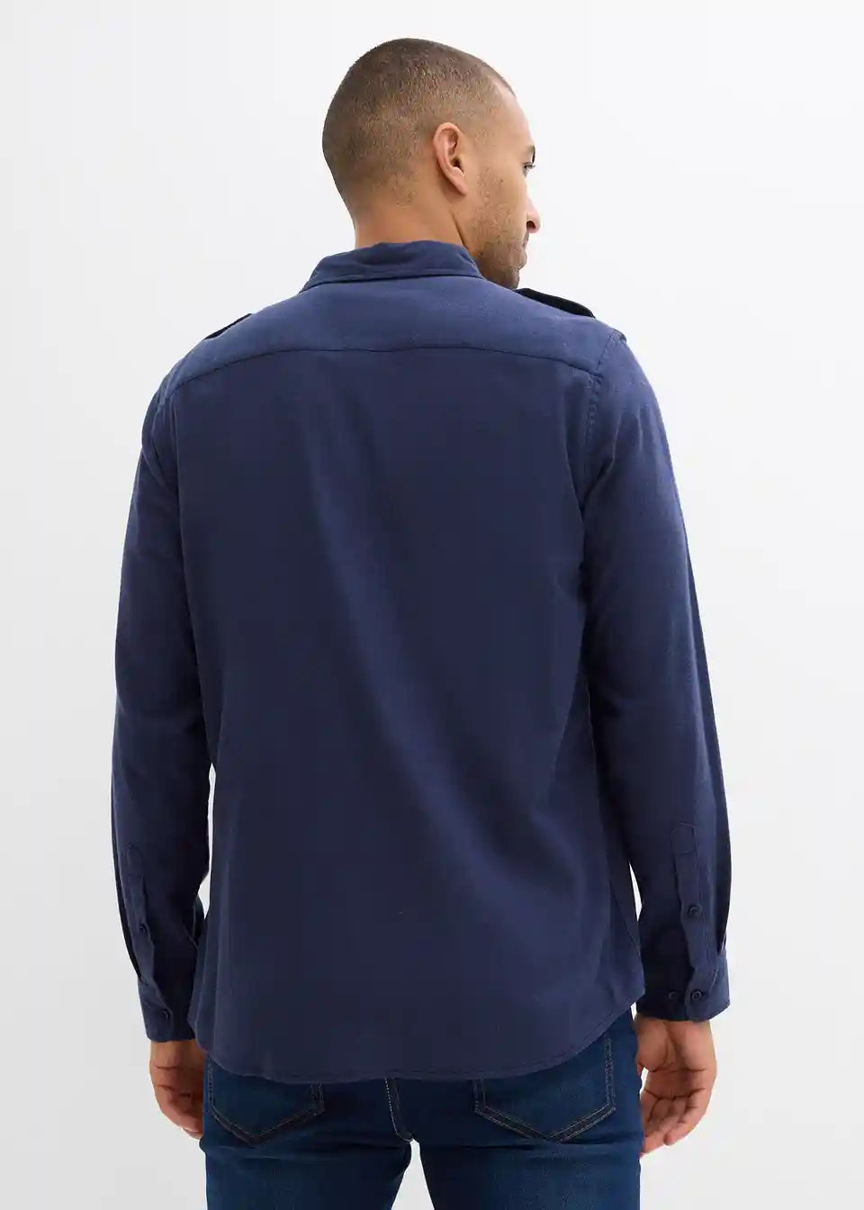 Flanellhemd mit Schulterklappen aus reiner Baumwolle