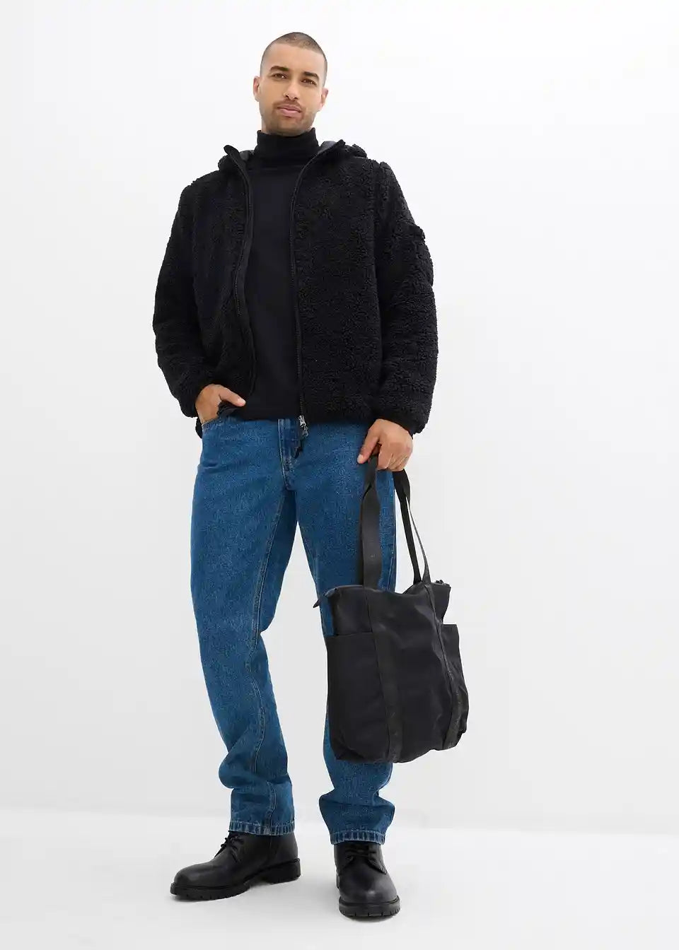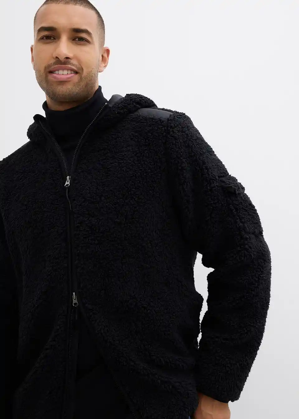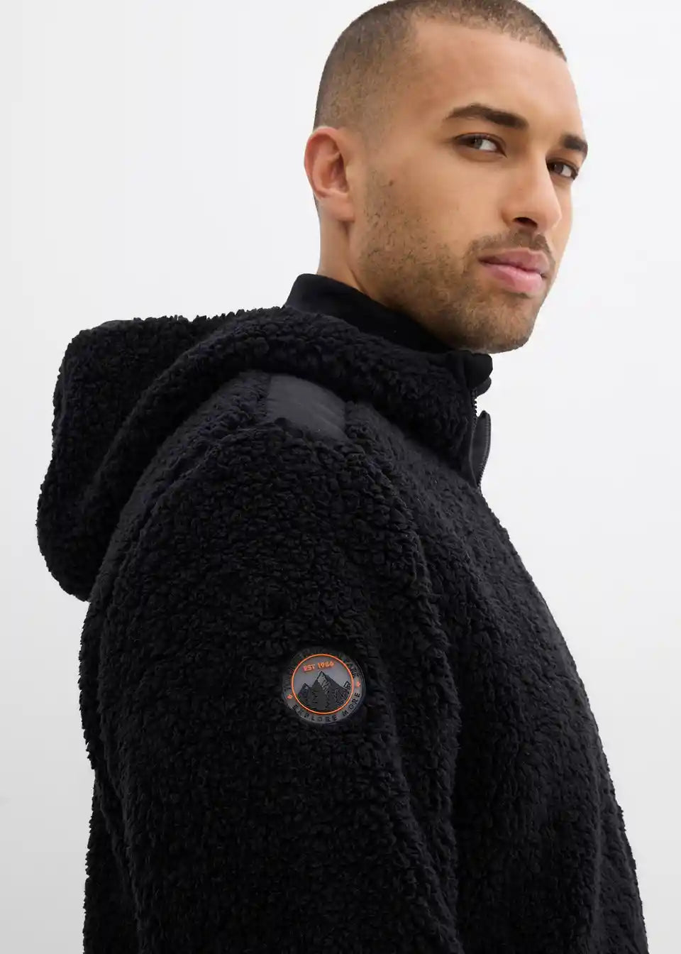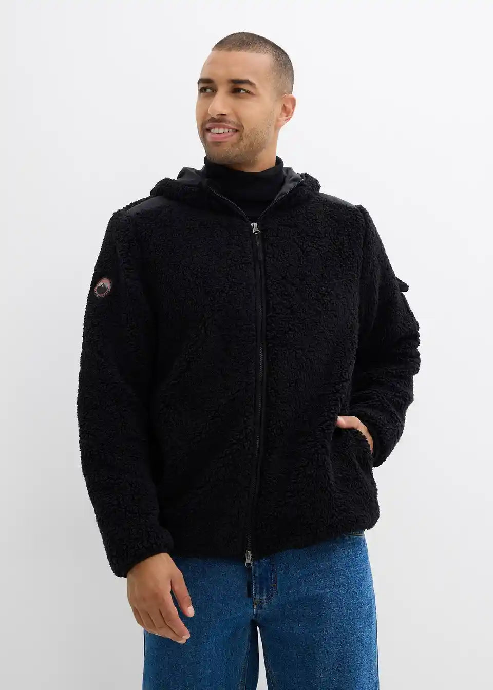Moderne Teddy-Fleece Jacke mit einem Badge auf dem Ärmel