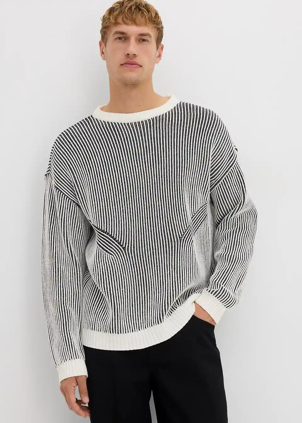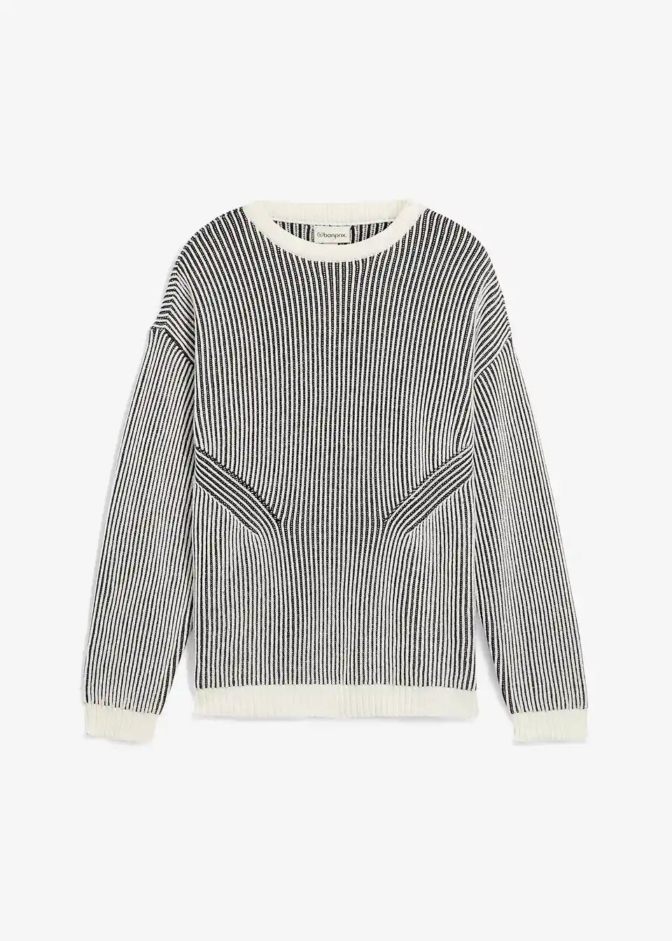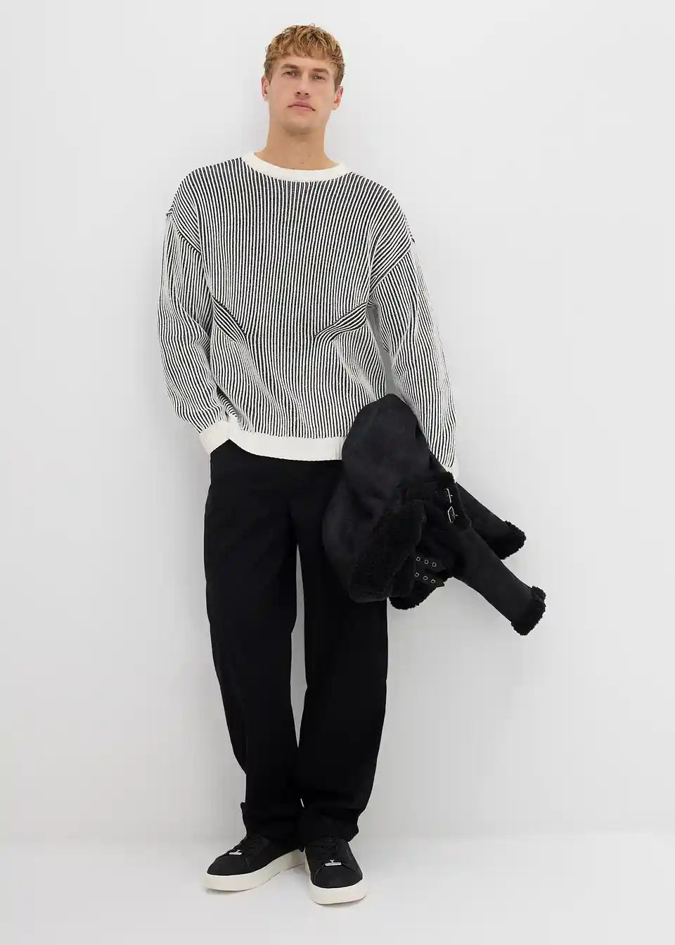 gerippter Pullover aus Baumwoll-Mix, Loose Fit