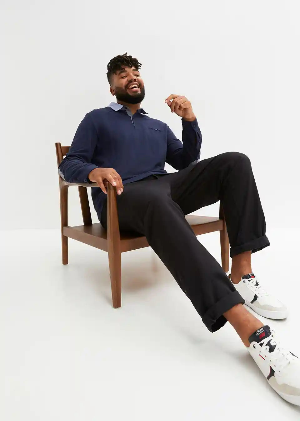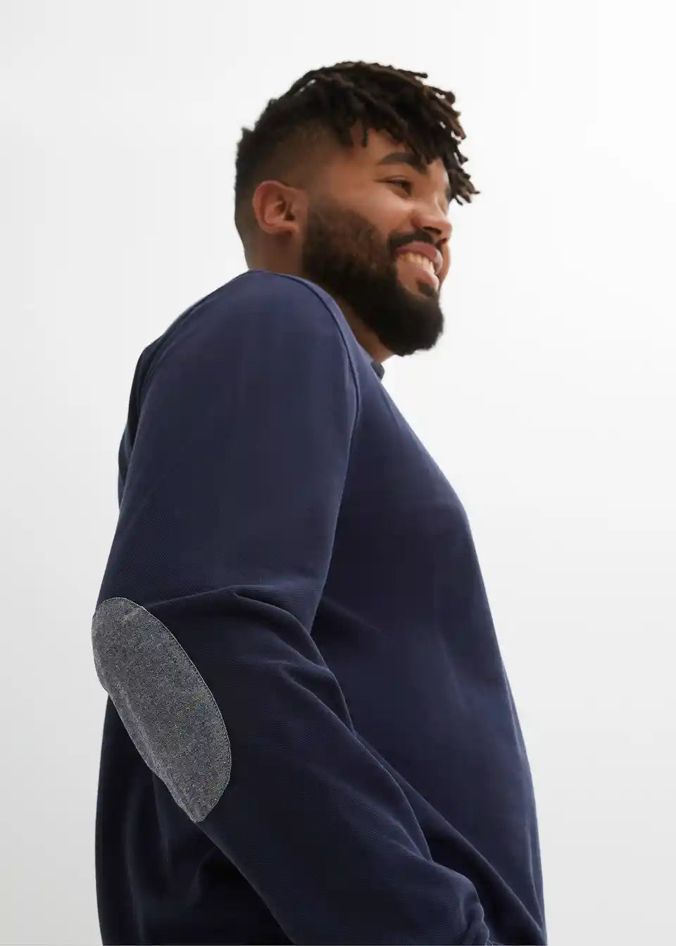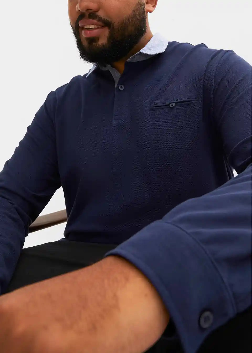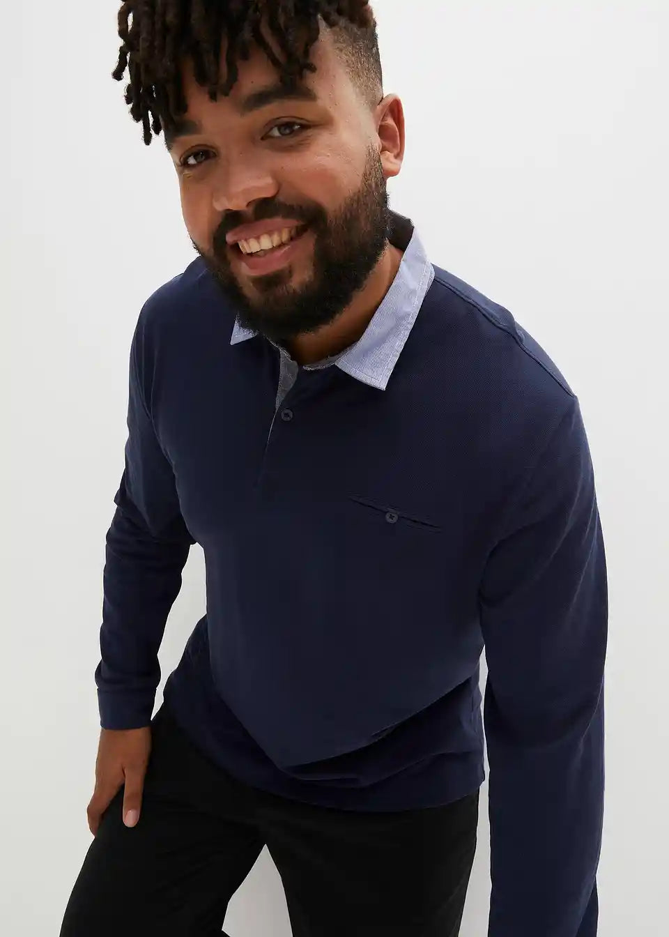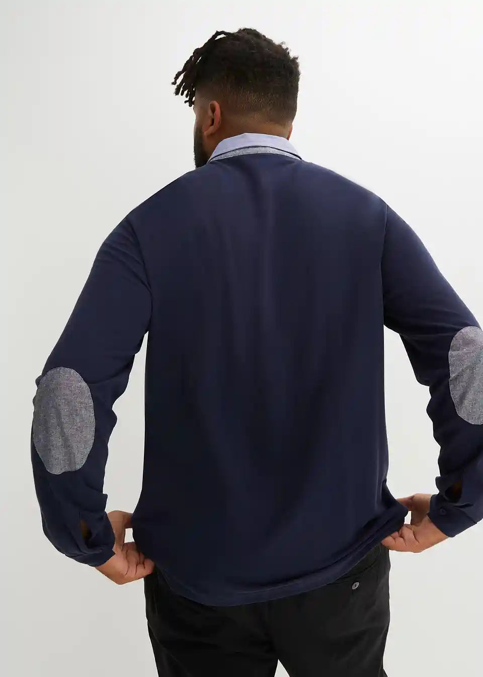 Modisches langärmliges Piqué-Poloshirt mit kontrastfarbigen Kragen und Polstern bei den Ellenbogen