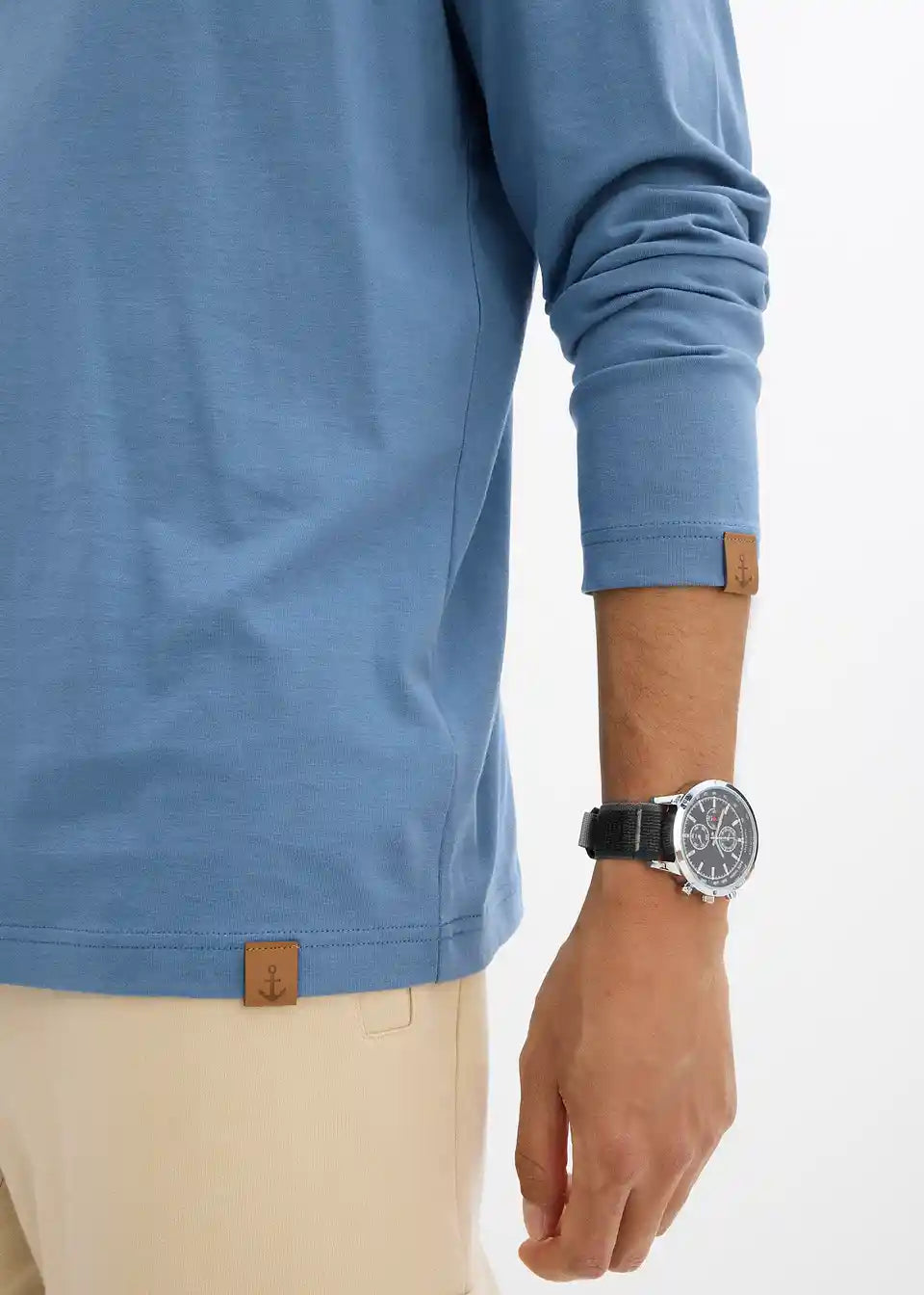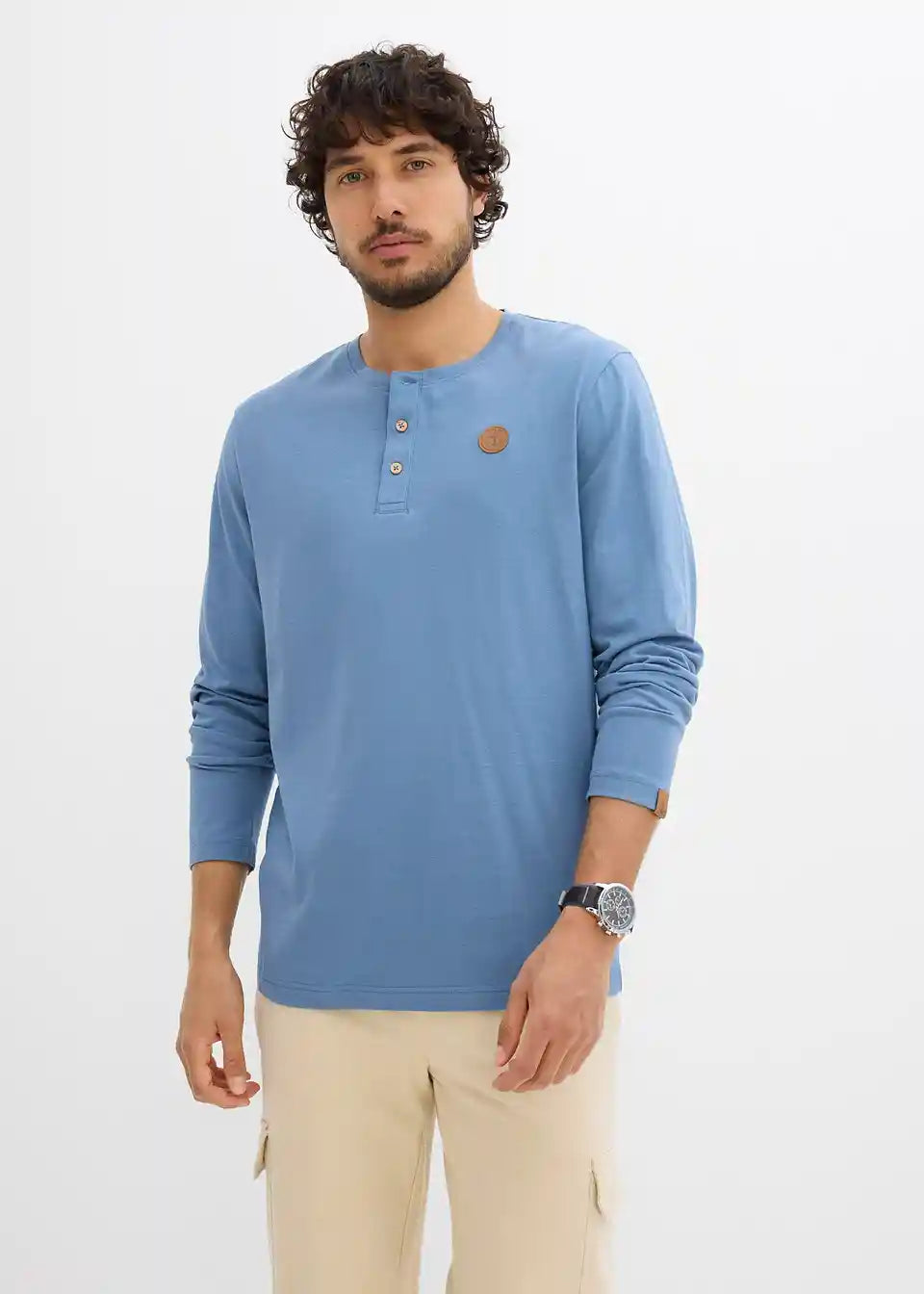 Angesagte Henleyshirt-Packung mit schönen Lederimitat-Details, maschinenwaschbar