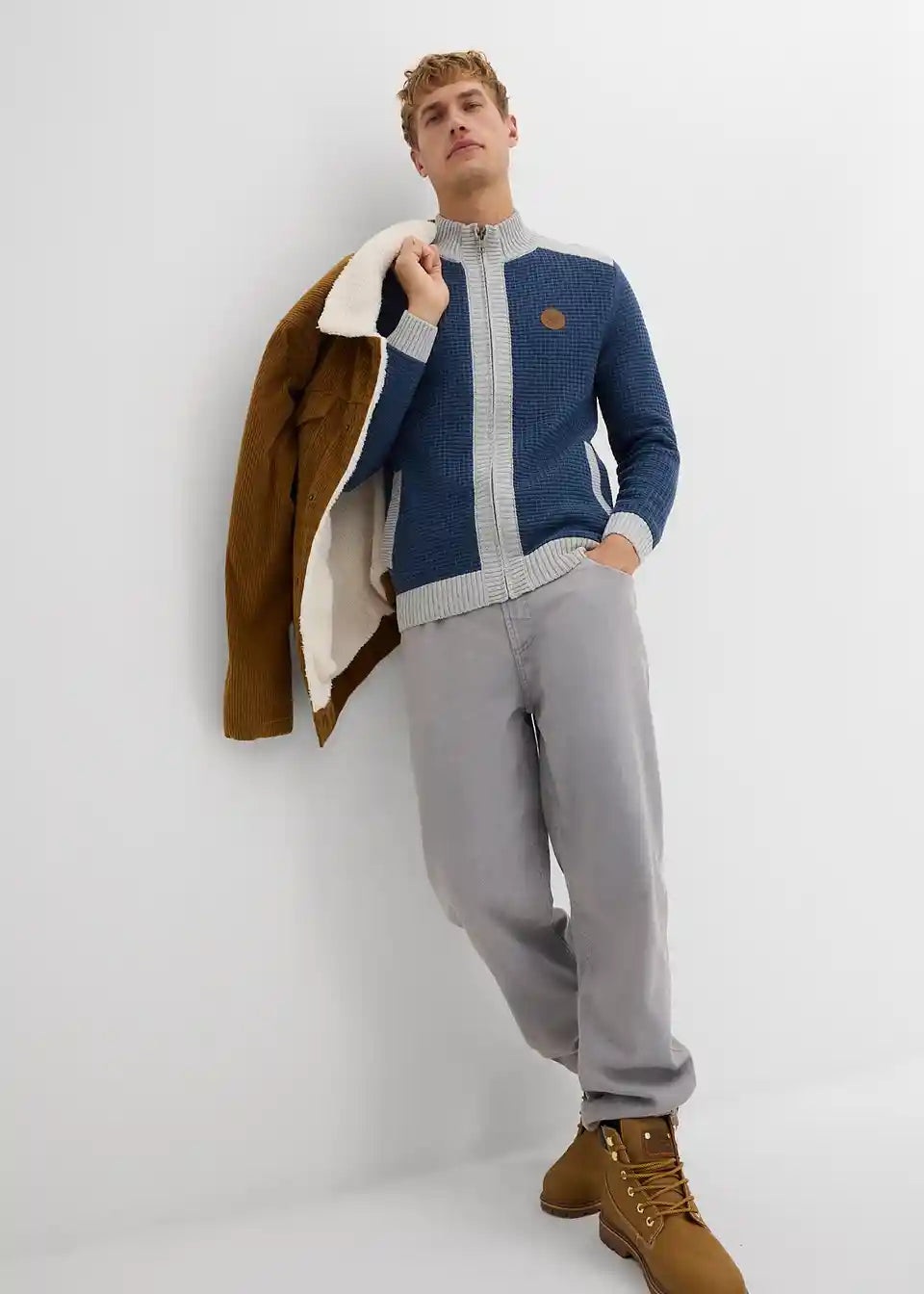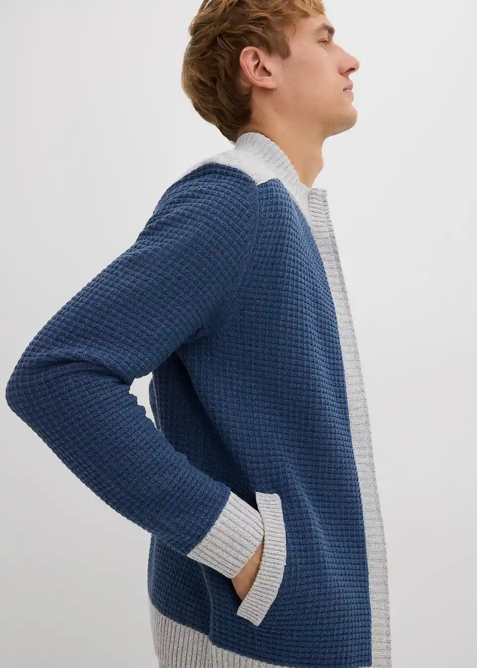 Angesagte Strickjacke mit zwei praktischen Taschen und einem Badge auf der Brust