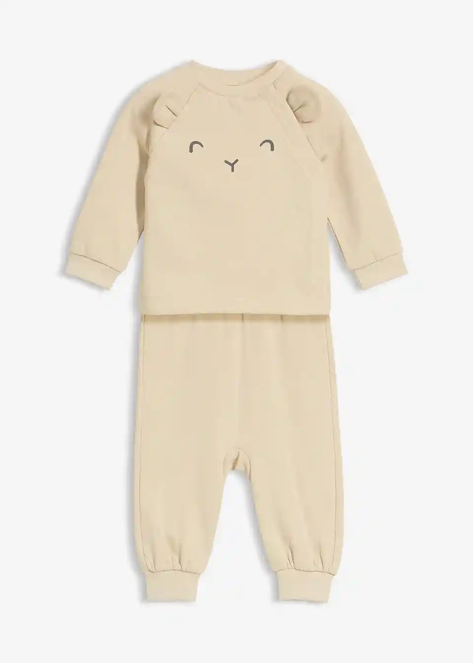 Entdecke das praktische Set mit Shirt und Hose aus weichem, leichtem Baumwollsweat – perfekt für kleine Entdecker! Die Sweatjacke hat einen klassischen Rundausschnitt, einen praktischen Verschluss an der Seite und lange Raglanärmel mit Bündchen. Ein besonderes Highlight sind die süßen kleinen Ohren, die der Jacke einen verspielten Look verleihen.