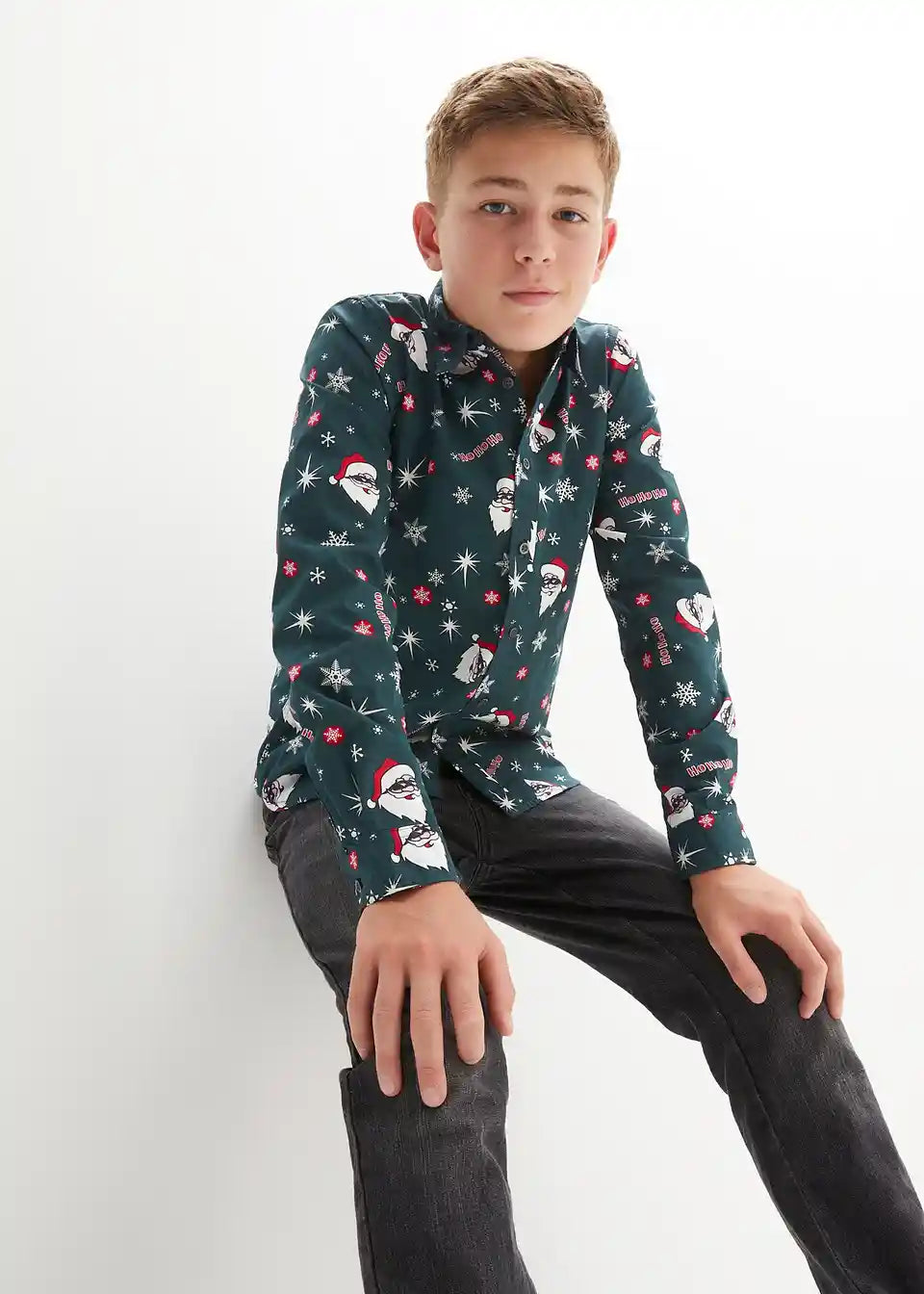 Jungen Langarmhemd mit Weihnachtsmotiv, Slim Fit
