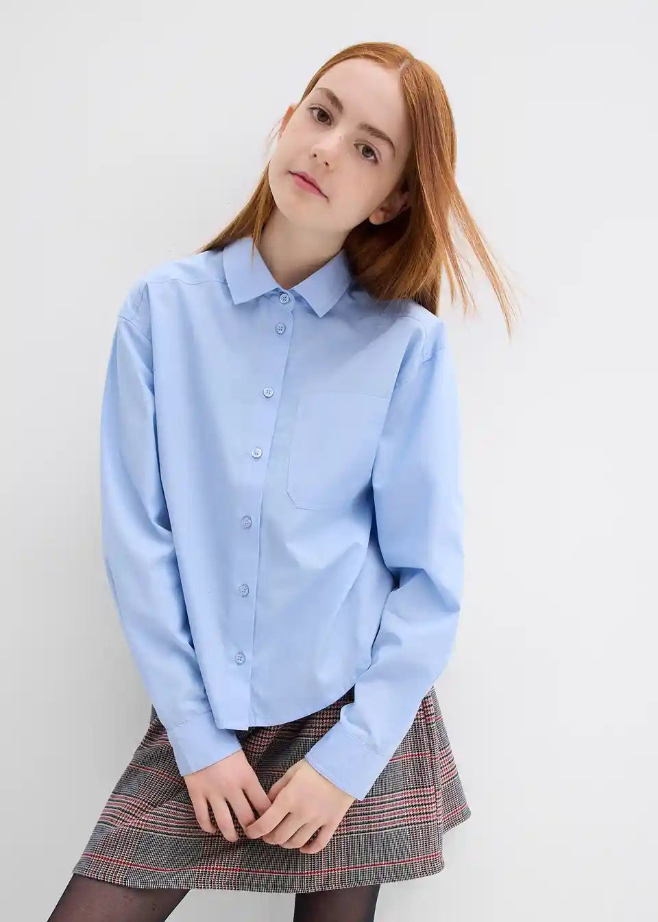 Zeitlose Oversize-Bluse für Mädchen mit kleiner Brusttasche