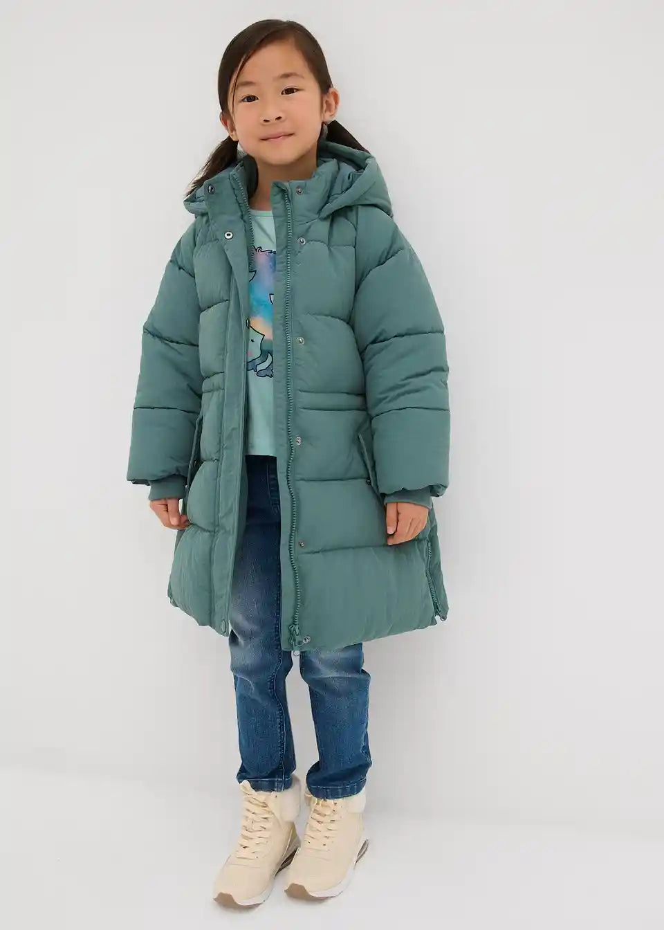 Warm gefütterter Mädchen Wintermantel mit seitlichen Taschen und reflektierenden Details