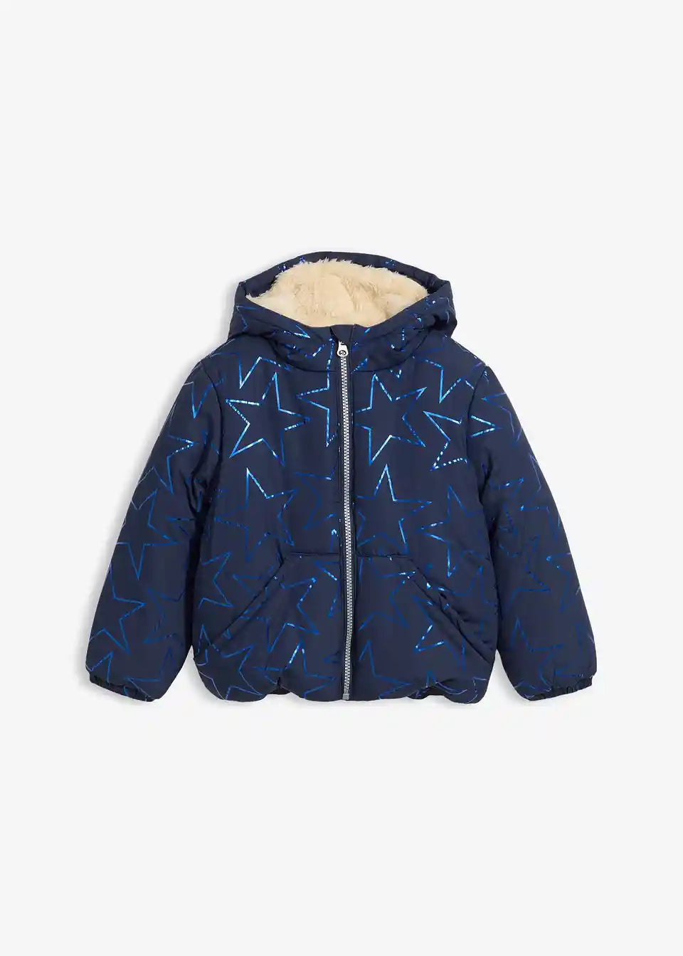 Warme wasserabweisende Mädchen Winterjacke mit kuscheligem Teddyfutter und Fleece Taschenfutter. Mit dekorativem Sterneprint.