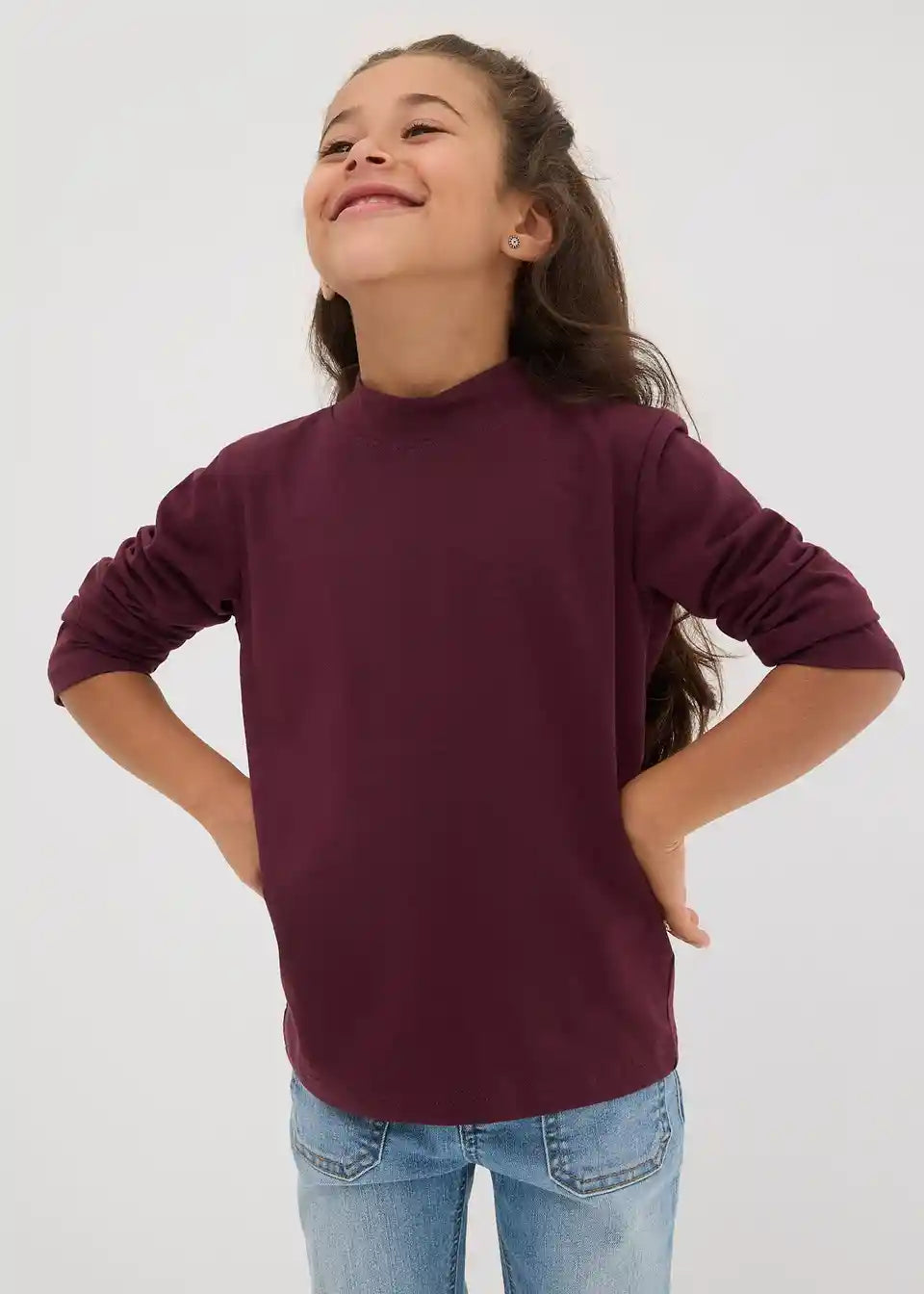 Zeitloses Langarmshirt für Mädchen mit kurzem Stehkragen im praktischen Doppelpack