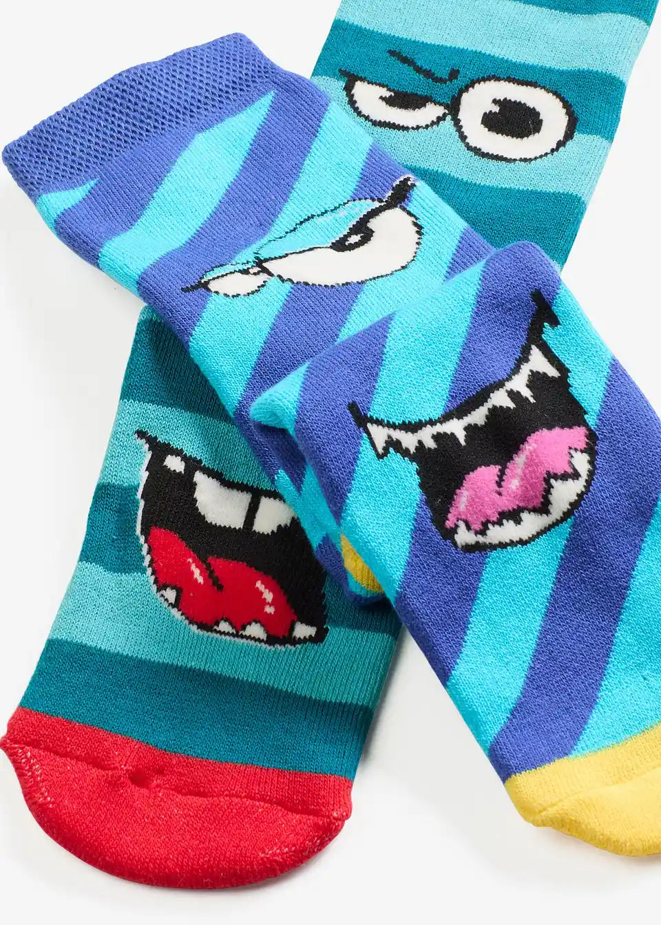 Lustige bunte Kinder Thermosocken mit Monster Motiv.