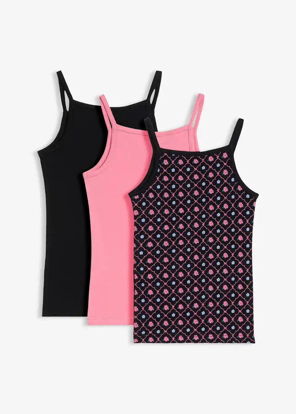 Kinder Top mit weicher Bio-Baumwolle und schönem Druck. Mit Spaghettiträgern und im praktischem 3er Pack.